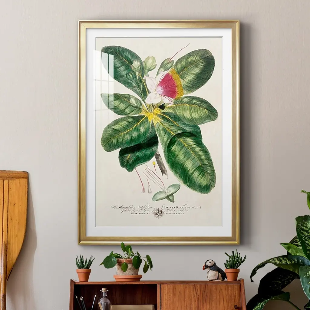 Imperial Tropical Botanical I Premium Framed Print - Ready to Hang A Premium Framed Print created to last. Framed in distressed wood and available in an array of sizes and colors Featuring a beveled a solid wood stretcher bar, each piece comes ready to hand 4 SIZES AVAILABLE 30.5''X42.5'' - Overall Size 26.5'X36.5'' - Overall Size 22.5''x30.5'' - Overall Size 18.5''x24.5'' - Overall Size Each piece is made to order. Each piece comes with hanging hardware. Made in the USA Ready to Hang Giclee Paper Print Acrylic Glass Beveled Matt Board