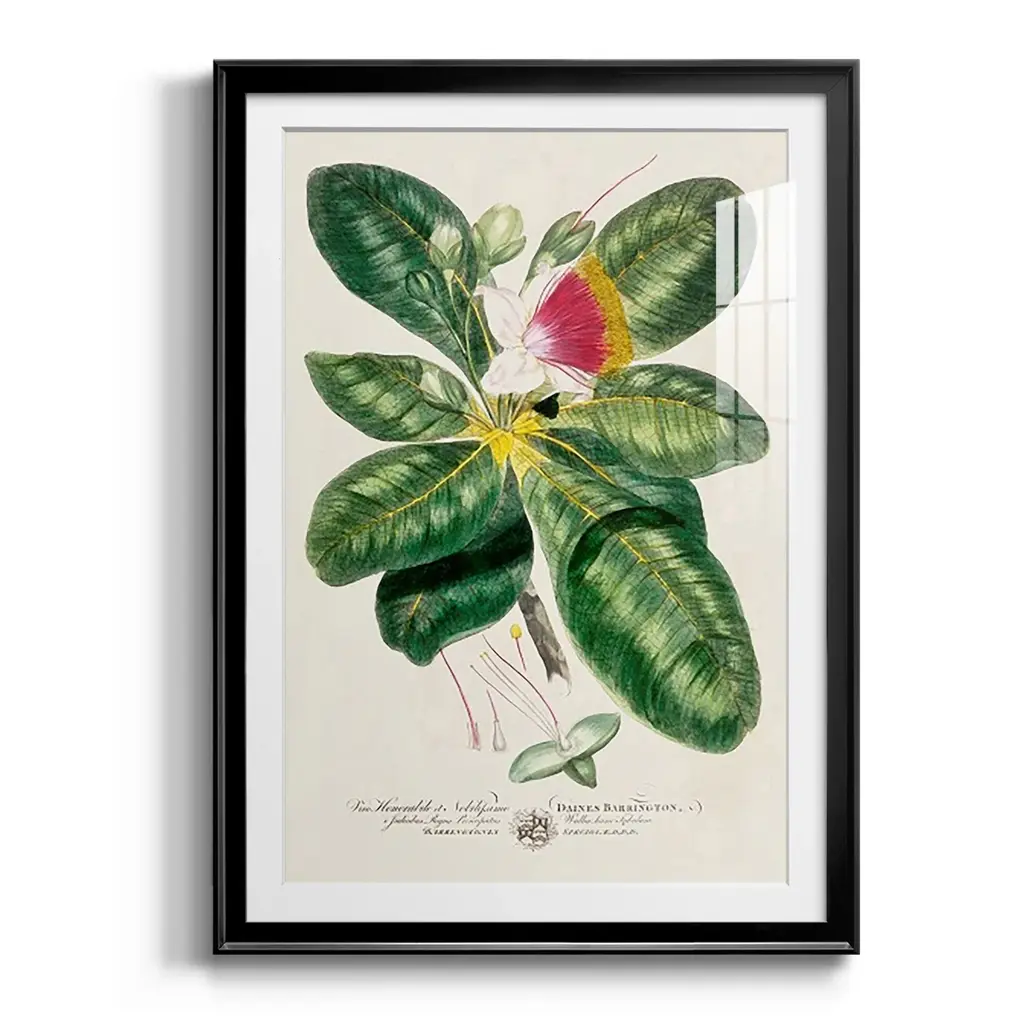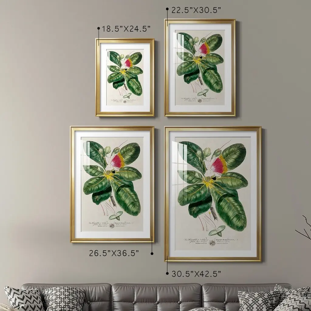 Imperial Tropical Botanical I Premium Framed Print - Ready to Hang A Premium Framed Print created to last. Framed in distressed wood and available in an array of sizes and colors Featuring a beveled a solid wood stretcher bar, each piece comes ready to hand 4 SIZES AVAILABLE 30.5''X42.5'' - Overall Size 26.5'X36.5'' - Overall Size 22.5''x30.5'' - Overall Size 18.5''x24.5'' - Overall Size Each piece is made to order. Each piece comes with hanging hardware. Made in the USA Ready to Hang Giclee Paper Print Acrylic Glass Beveled Matt Board