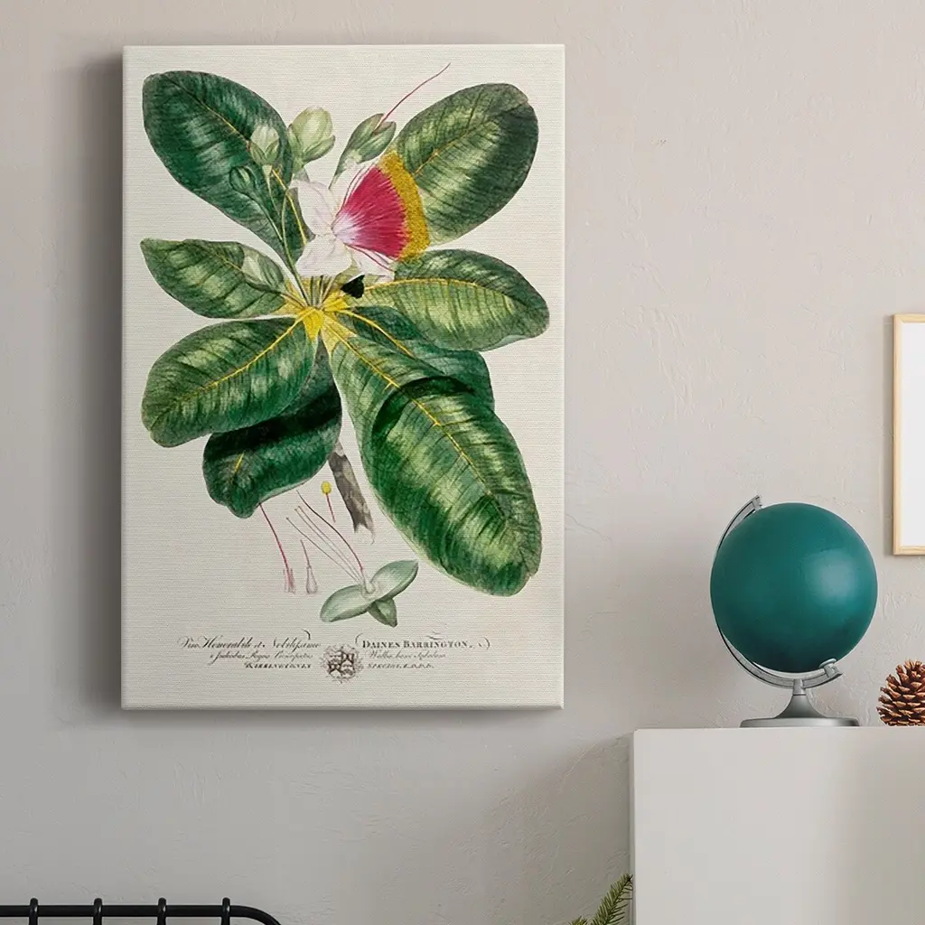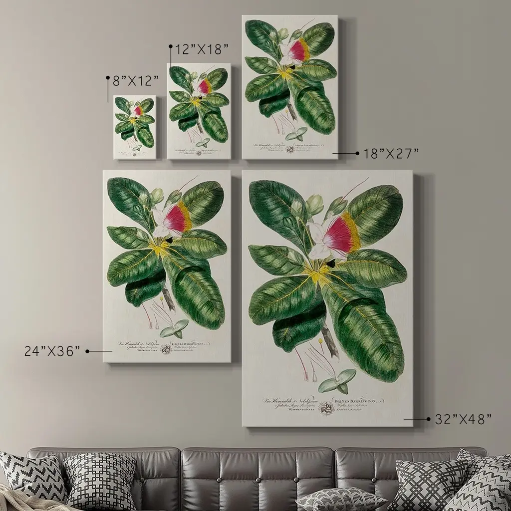 Imperial Tropical Botanical I Premium Gallery Wrapped Canvas - Ready to Hang A premium hand stretched gallery wrapped canvas print created to last. Featuring a beveled a solid wood stretcher bar, each piece comes ready to hand 6 SIZES AVAILABLE 8''X12'' - Overall Size 12''X18'' - Overall Size 18''X27'' - Overall Size 24''x36'' - Overall Size 32''x48'' - Overall Size 40''x60'' - Overall Size Each piece is made to order. Built to Last Each piece comes ready to hang Solid wood stretcher Fade and Water resistant Made domestically