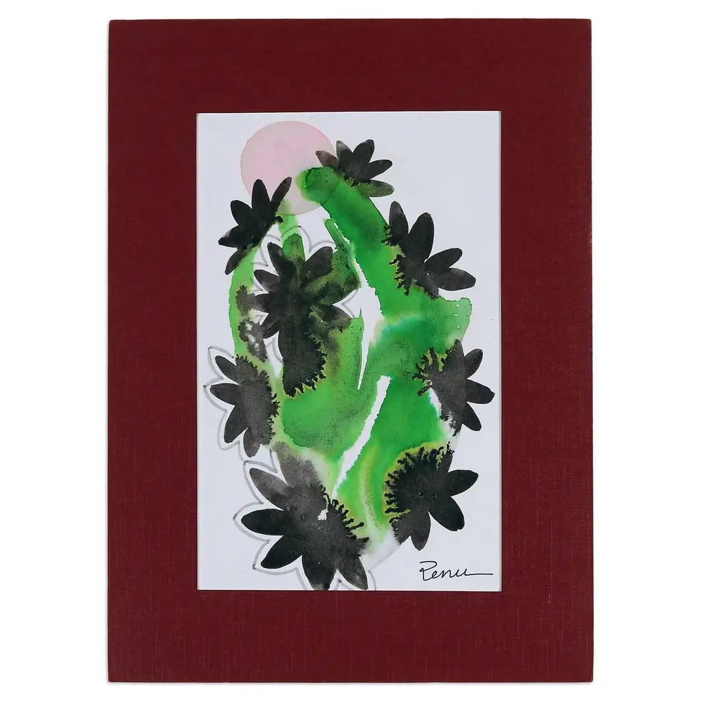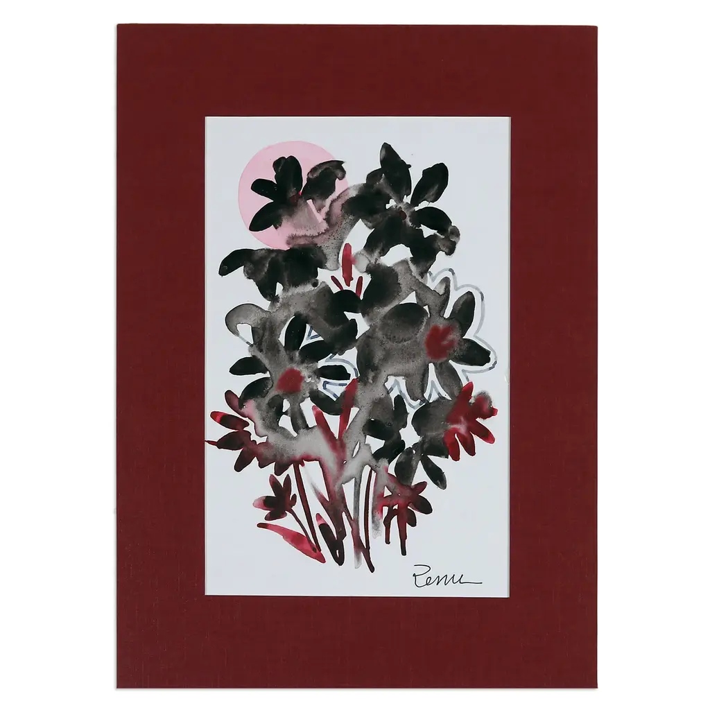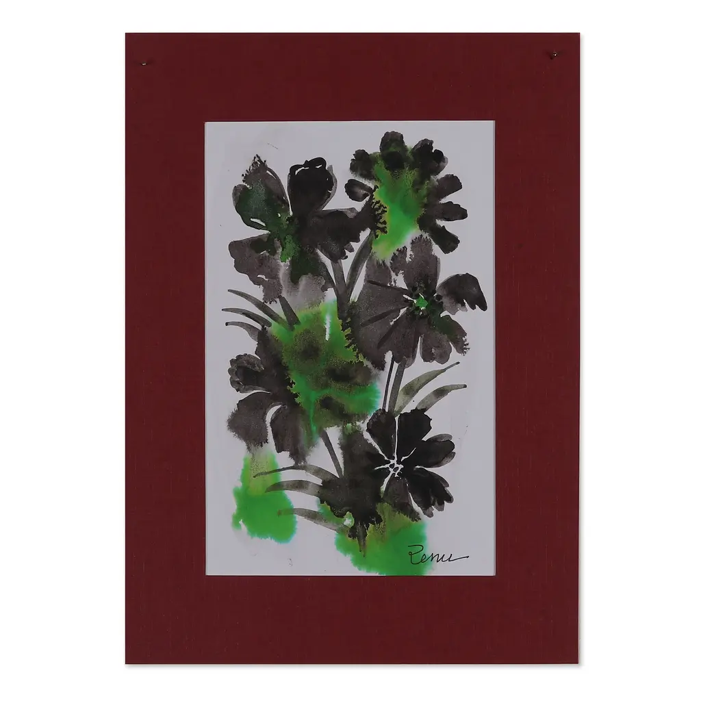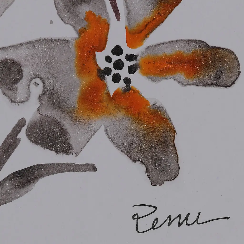 Gracious petals imitate the sun's magnificence in this beautiful creation by Renu Jaiswal of India. The artist uses an impressionist style to portray these gorgeous flowers in a palette of black, orange and grey hues, showcasing her talent in watercolor painting and her love for nature.The piece arrives signed and stretched.