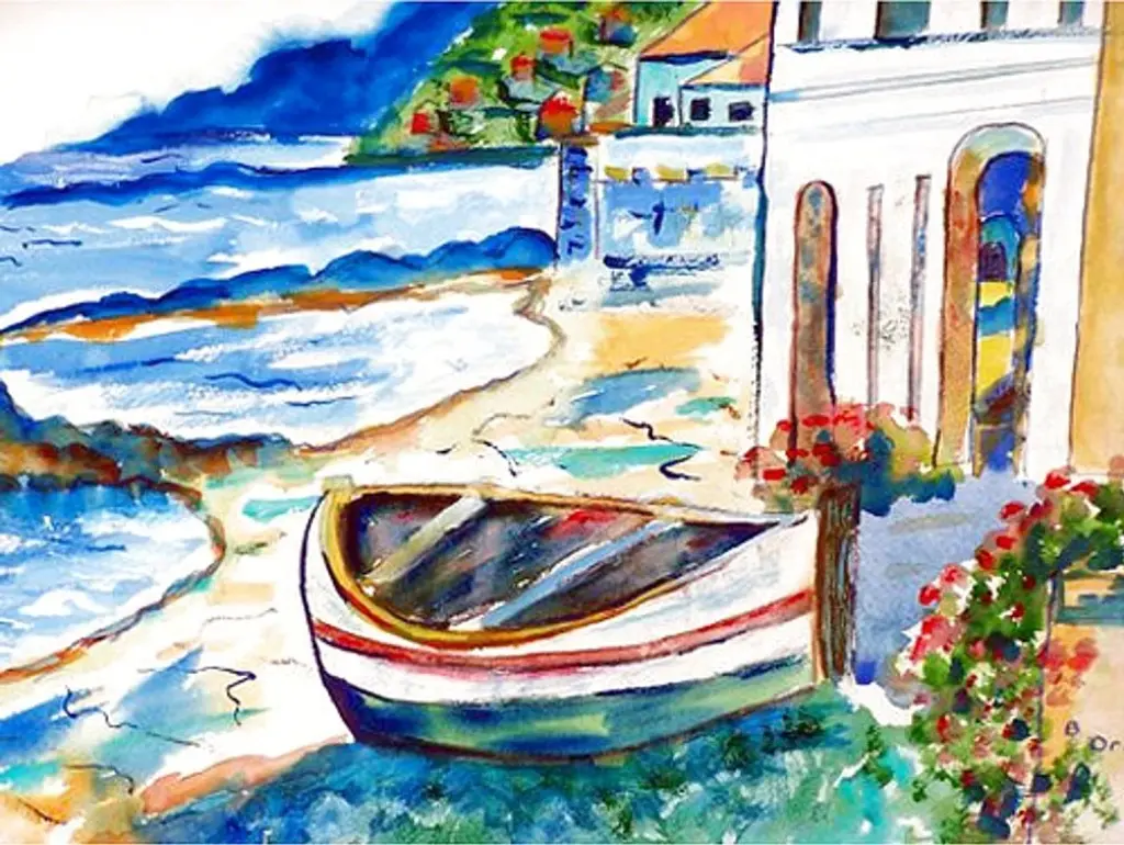 Impressionist Watercolor Seascape Painting On Handmade Paper- Anchored Dreams