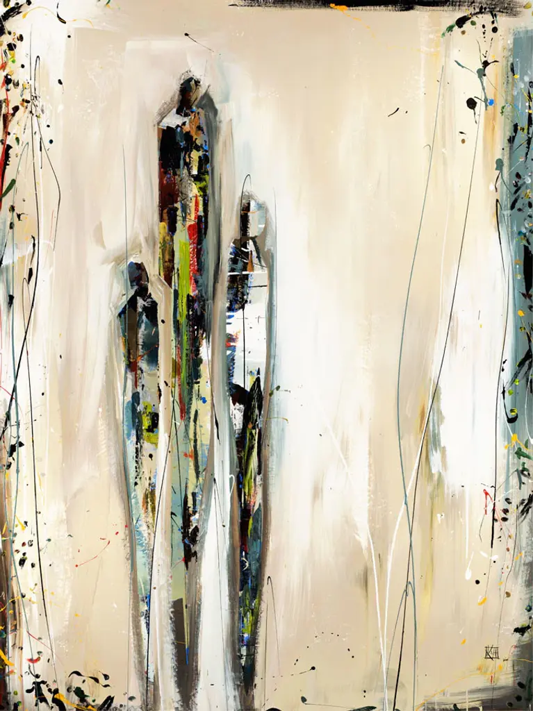 Your ready to hang artwork is printed on canvas then stretched and mounted to a 2-inch thick - hand stained black wood frame. Arrives at your door complete with an easy to use self-leveling hangking kit.