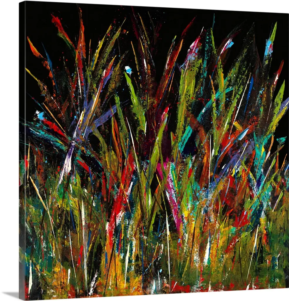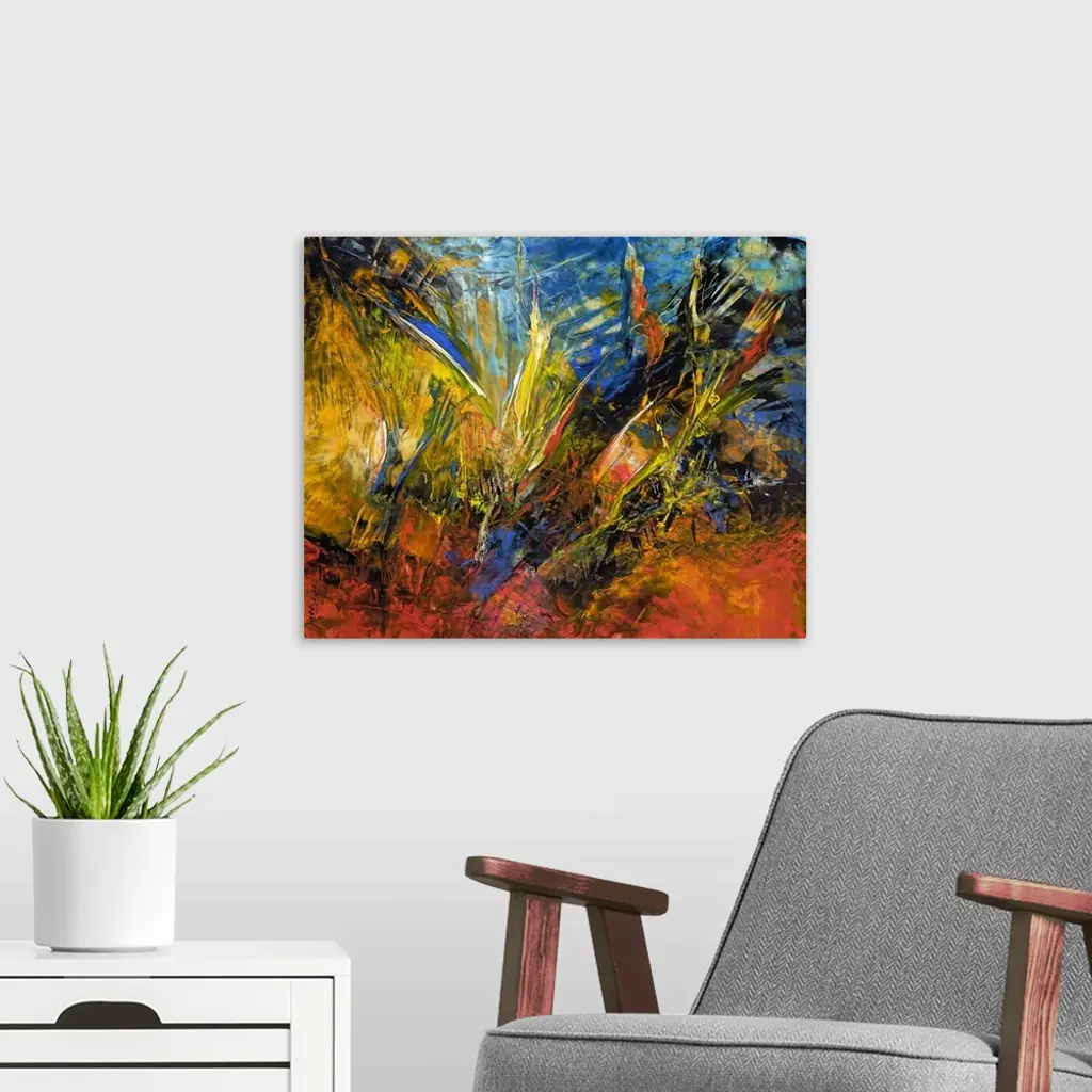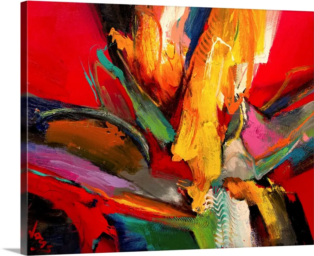 Contemporary abstract painting using wild and vibrant splashes of color.