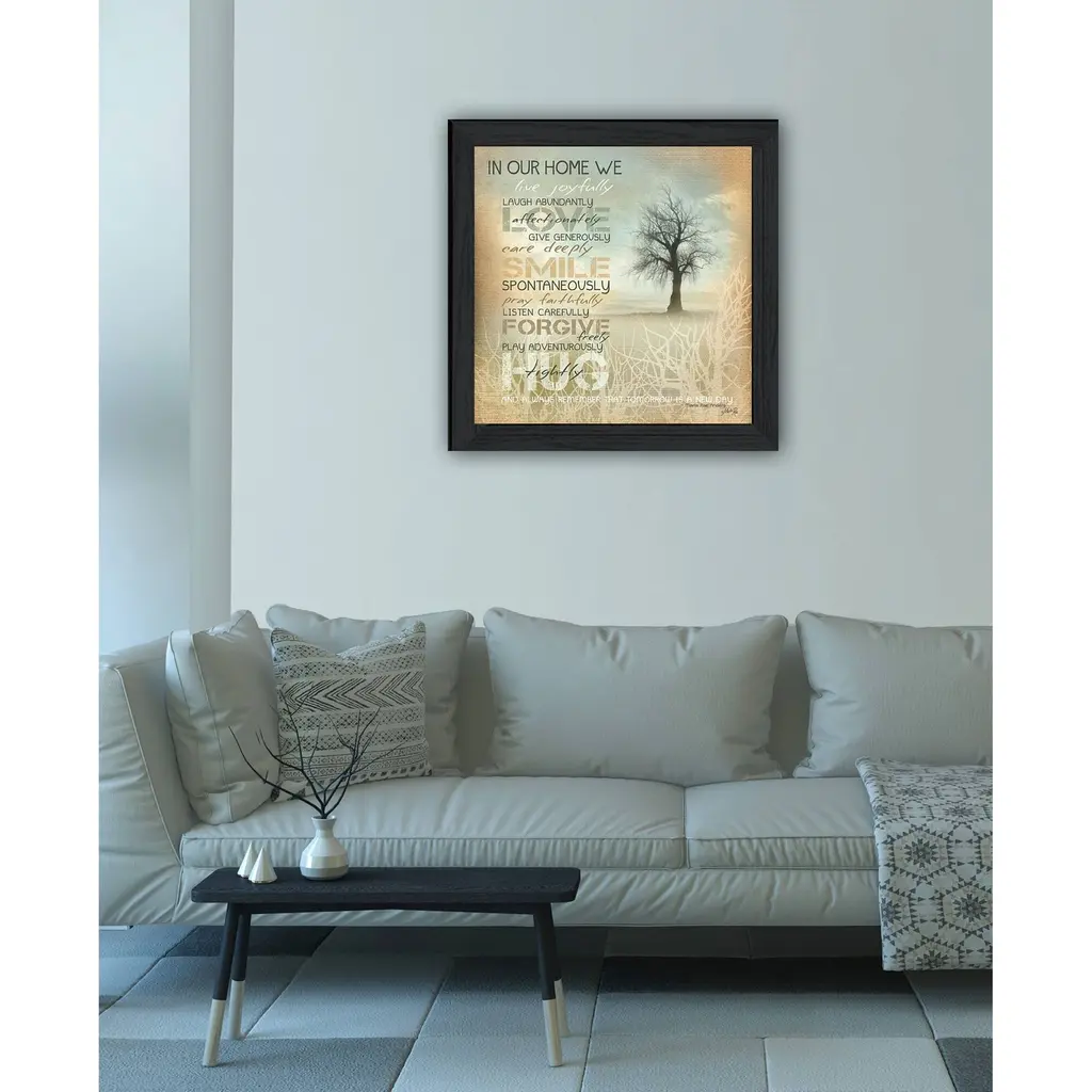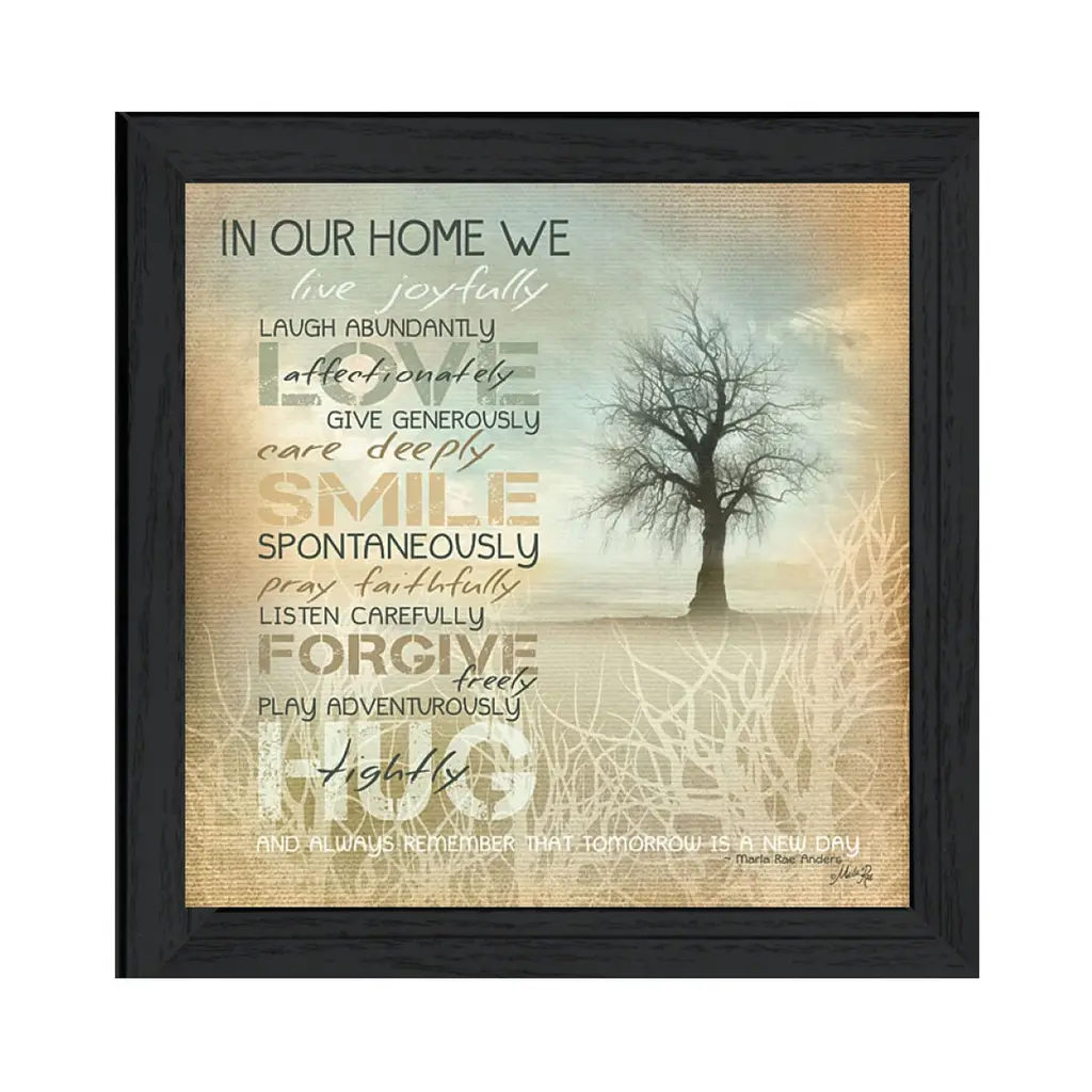 The in our home 4 black framed print wall art is the perfect decorative accessory for your home. This print is a visual artistic expression that allows you to decorate your space in style. Reproduced for you on wood, this hanging decorative accent will be a trendy and fashionable way to dress your walls in a rustic and modern farmhouse vibe. Adding this hanging wall art to your space to make your room feel more finished and attractive. Instantly liven up your space with this art that brings color and dimension to your walls. 21" H x 21" W x 1" D