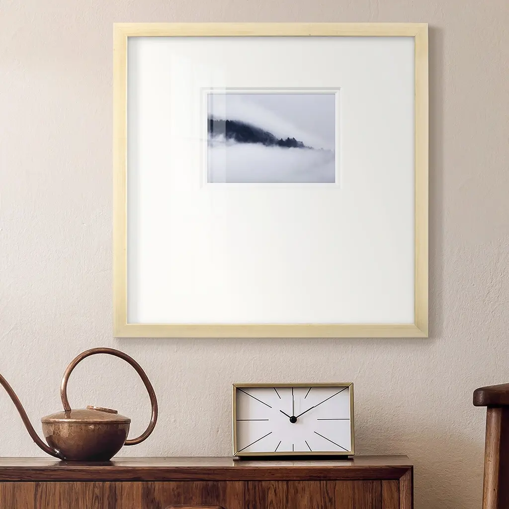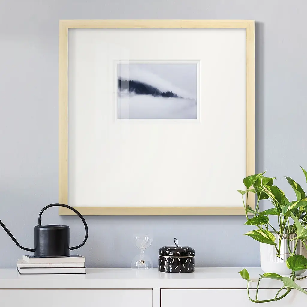 In the CloudsPremium Framed Print A framed cold pressed paper print featuring superior double matting and quality frame. 2 SIZES AVAILABLE 16''X16''' - Overall Size 20''X20''' - Overall Size Each piece is made to order. Each piece comes with hanging hardware. Made in the USA Ready to Hang Giclee Paper Print Plexiglass Beveled Matt Board Double Matte Board