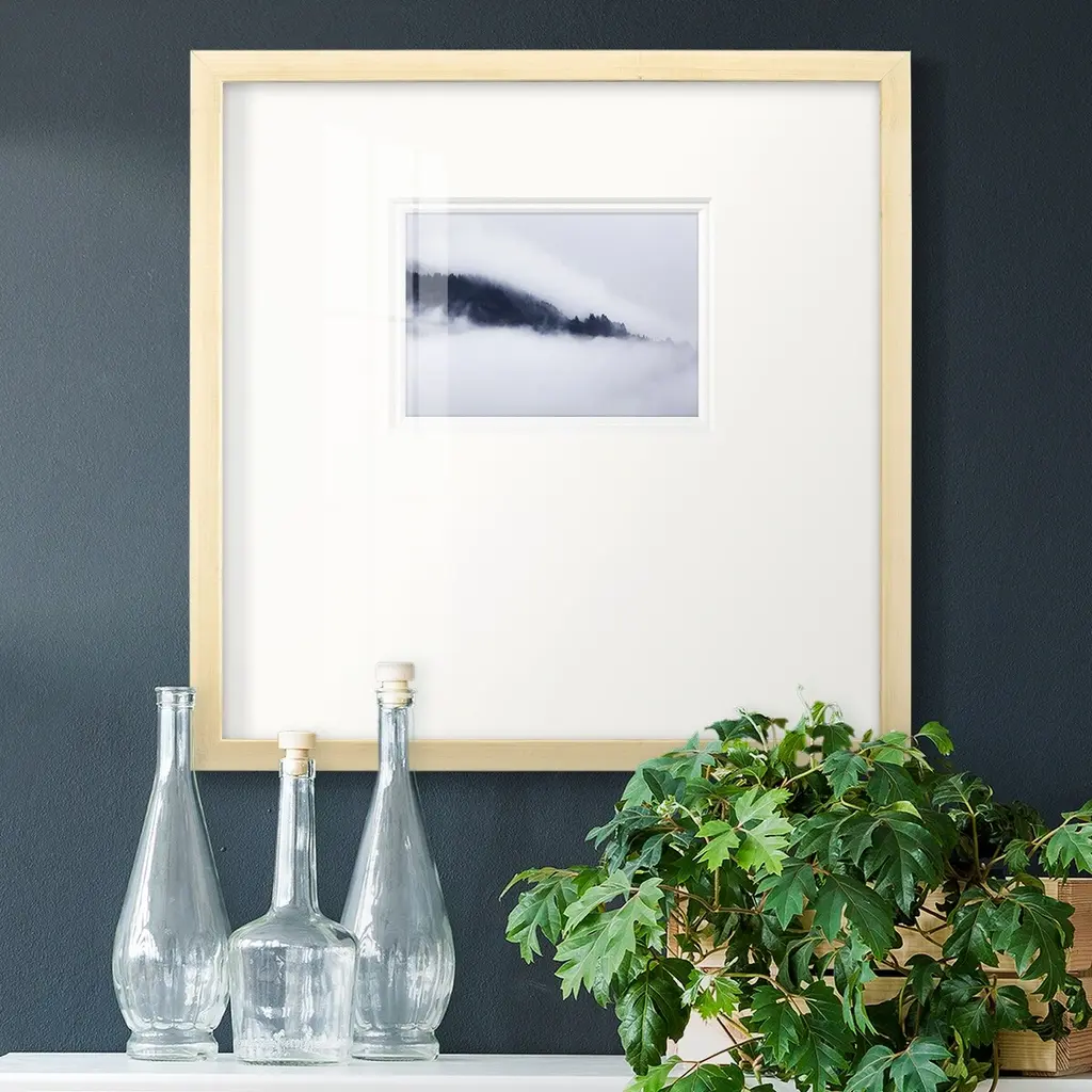In the CloudsPremium Framed Print A framed cold pressed paper print featuring superior double matting and quality frame. 2 SIZES AVAILABLE 16''X16''' - Overall Size 20''X20''' - Overall Size Each piece is made to order. Each piece comes with hanging hardware. Made in the USA Ready to Hang Giclee Paper Print Plexiglass Beveled Matt Board Double Matte Board