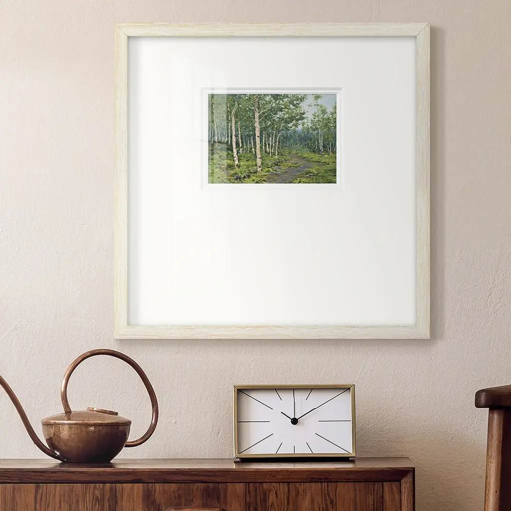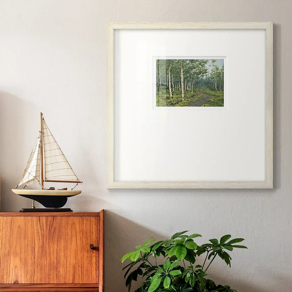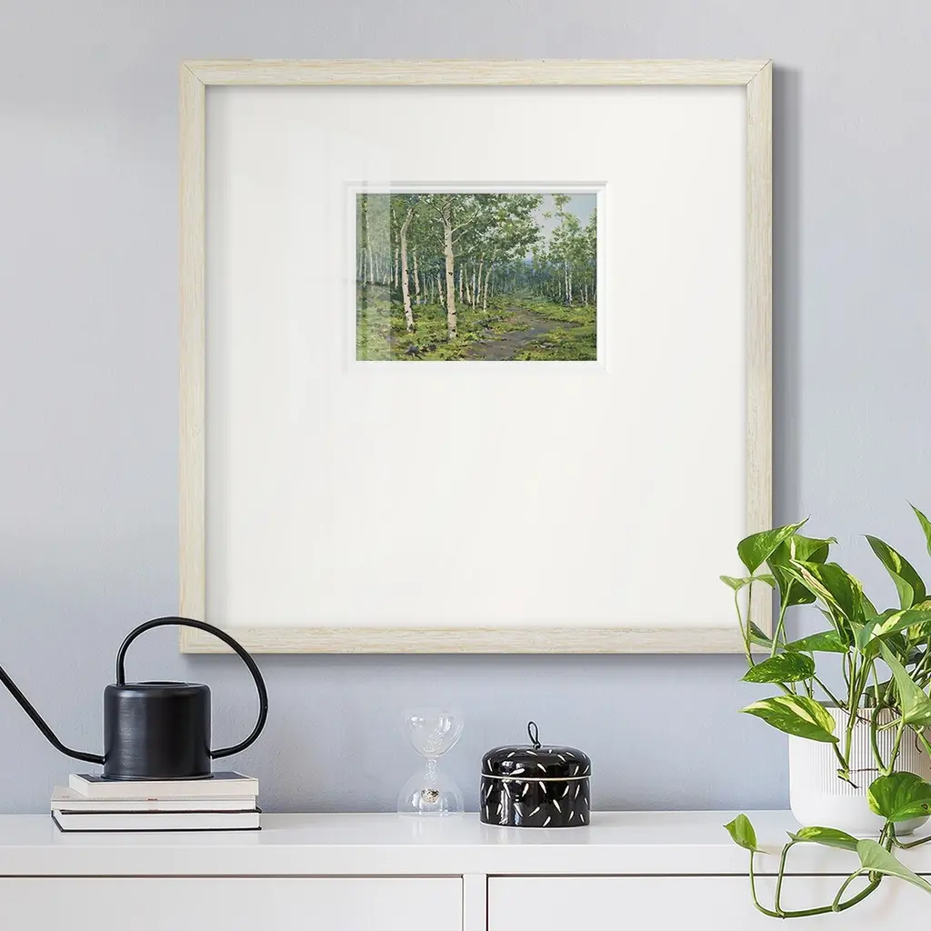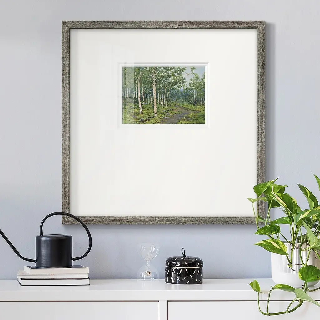 In the ForestPremium Framed Print A framed cold pressed paper print featuring superior double matting and quality frame. 2 SIZES AVAILABLE 16''X16''' - Overall Size 20''X20''' - Overall Size Each piece is made to order. Each piece comes with hanging hardware. Made in the USA Ready to Hang Giclee Paper Print Plexiglass Beveled Matt Board Double Matte Board