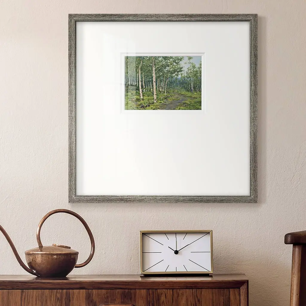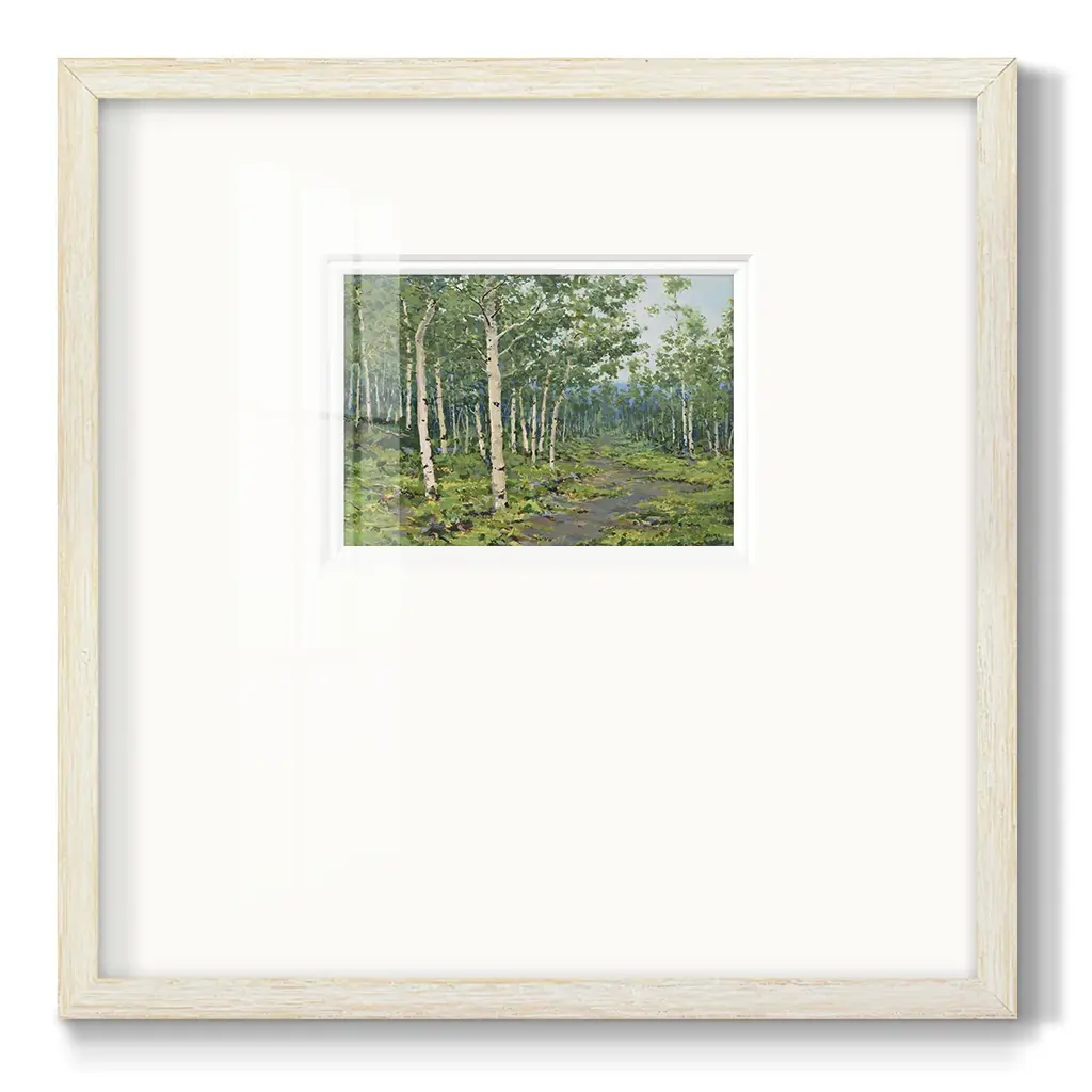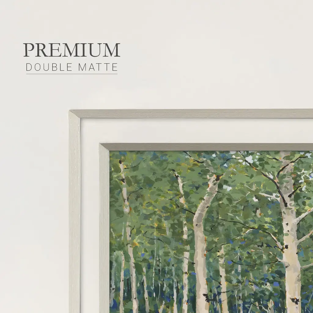 In the ForestPremium Framed Print A framed cold pressed paper print featuring superior double matting and quality frame. 2 SIZES AVAILABLE 16''X16''' - Overall Size 20''X20''' - Overall Size Each piece is made to order. Each piece comes with hanging hardware. Made in the USA Ready to Hang Giclee Paper Print Plexiglass Beveled Matt Board Double Matte Board