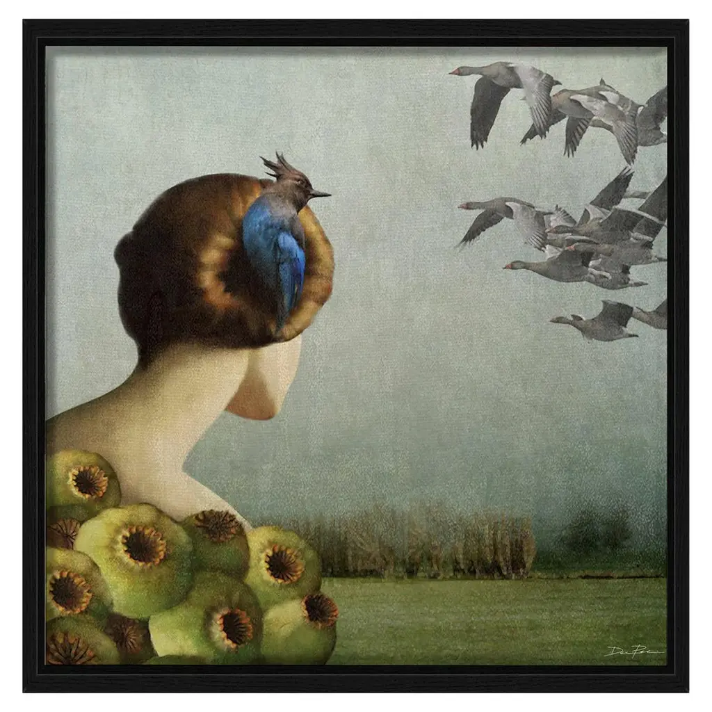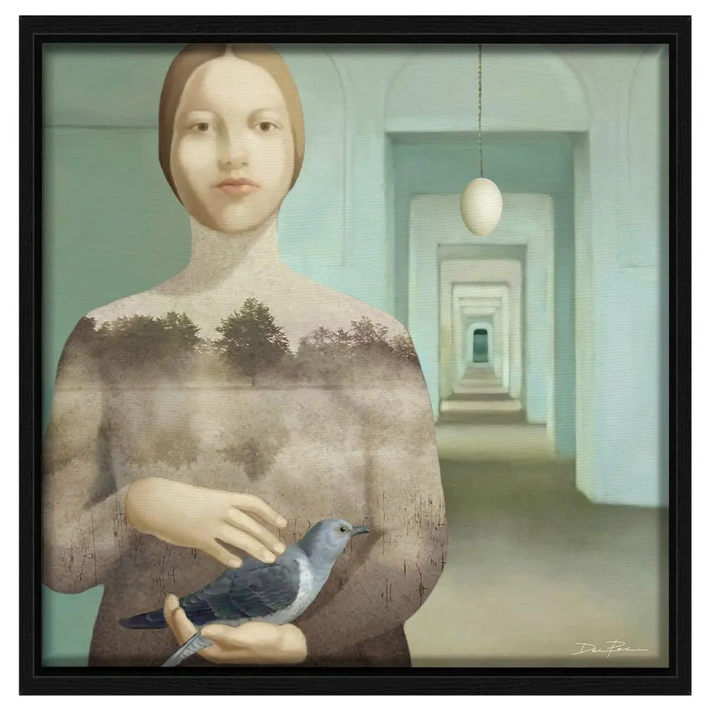 This Pop-Surrealist digital painting depicts a woman being tempted by a serpent in the Garden of Eden. Instead of an apple, she is holding a broken heart in her hands. The female figure stand out against a lush background of exotic foliage and flowers. Part of a signed, numbered Limited Edition. "Certificate of Authenticity" include. Basswood box frame.Year of Creation: 2015Edition Number: 1/300Artist’s Signature: Printed on the Canvas + original signature on Limited Edition Certificate which will be given with the purchase of the itemCondition: NewMaterials: Cotton canvas, basswood box frame, dried fir structure