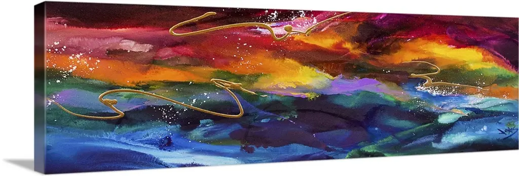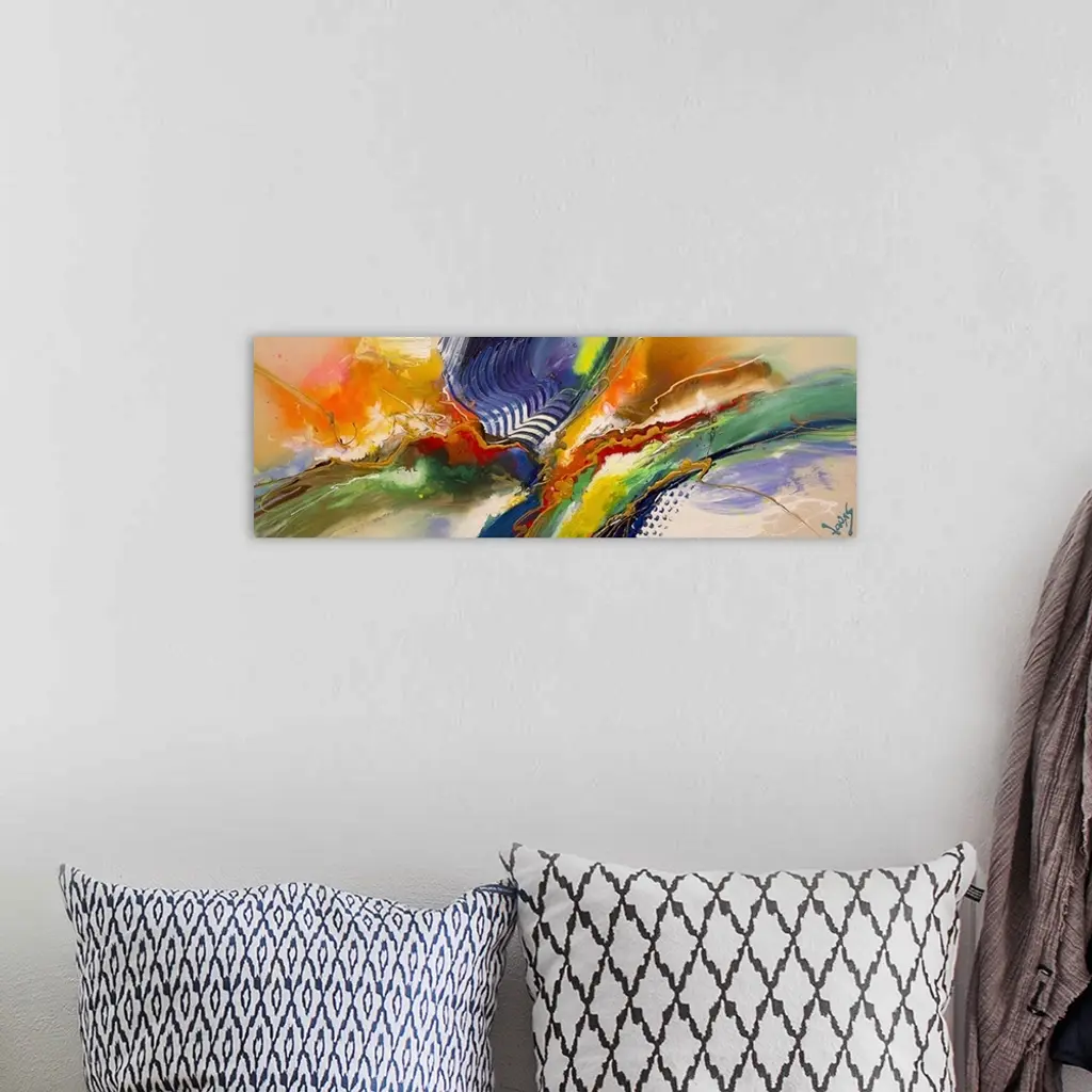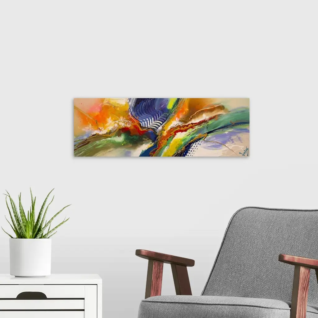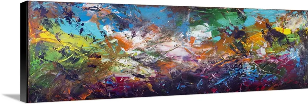 Contemporary abstract painting using wild and vivid colors to create movement and depth.