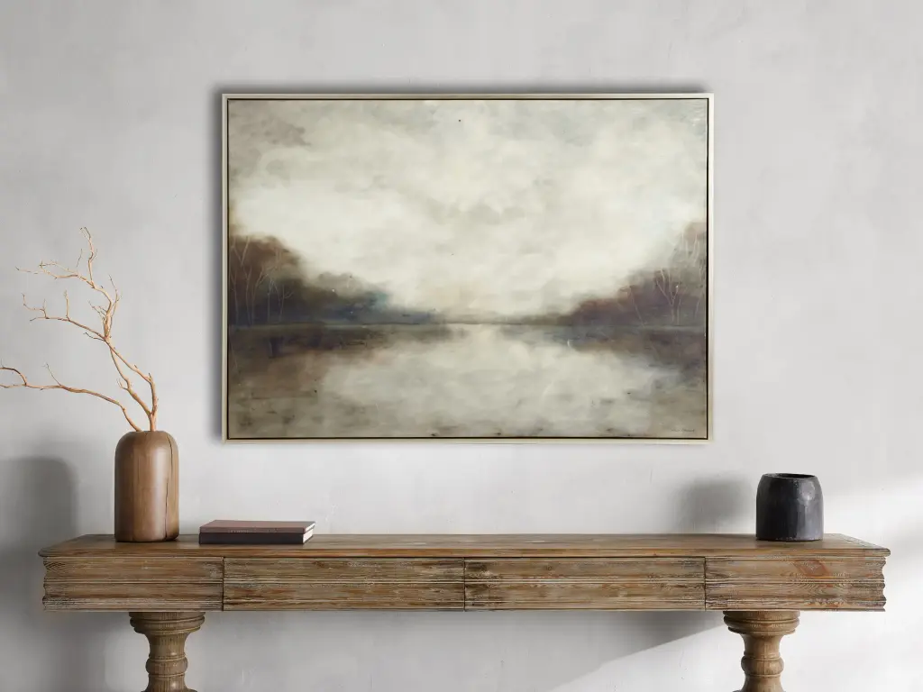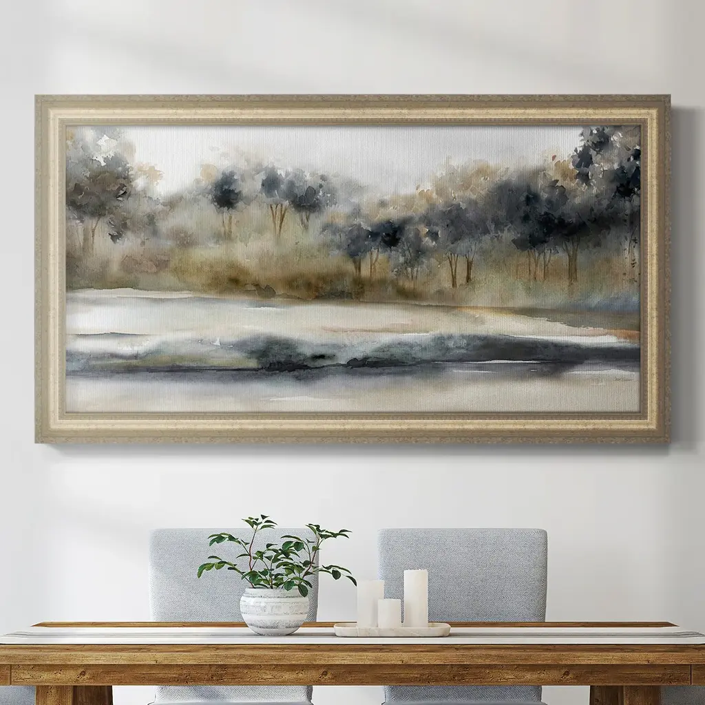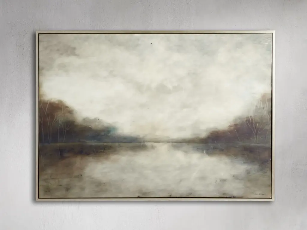 This impressionistic landscape evokes a sense of peace and calm. Hand-applied embellishments add texture throughout with an encaustic finish that further elevates the piece and builds upon its impressionistic roots. The blue color palette and subject matter make this the perfect accent piece for any home décor style, from traditional to contemporary.