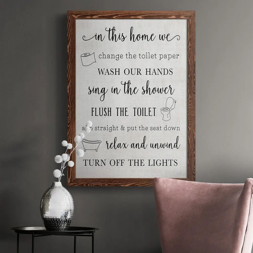 In This Bathroom-Premium Framed Canvas - Ready To Hang - 27.5x37.5 - Walnut