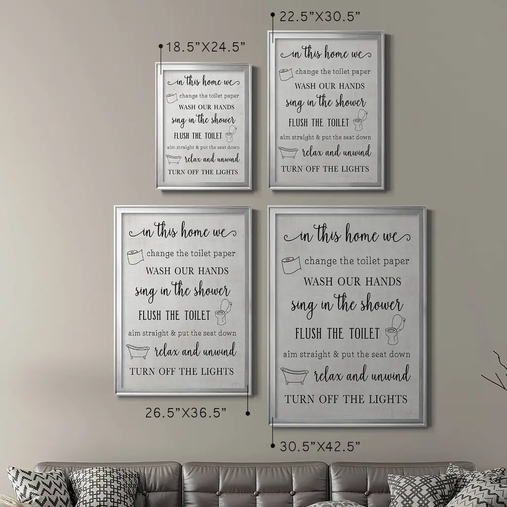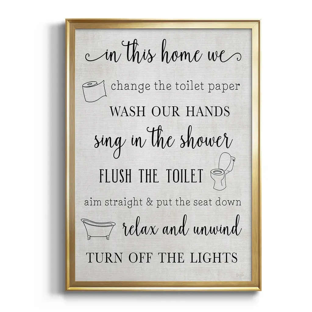In This Bathroom Premium Framed Print - Ready to Hang A Premium Framed Print created to last. Framed in distressed wood and available in an array of sizes and colors Featuring a beveled a solid wood stretcher bar, each piece comes ready to hand 4 SIZES AVAILABLE 30.5''X42.5'' - Overall Size 26.5'X36.5'' - Overall Size 22.5''x30.5'' - Overall Size 18.5''x24.5'' - Overall Size Each piece is made to order. Each piece comes with hanging hardware. Made in the USA Ready to Hang