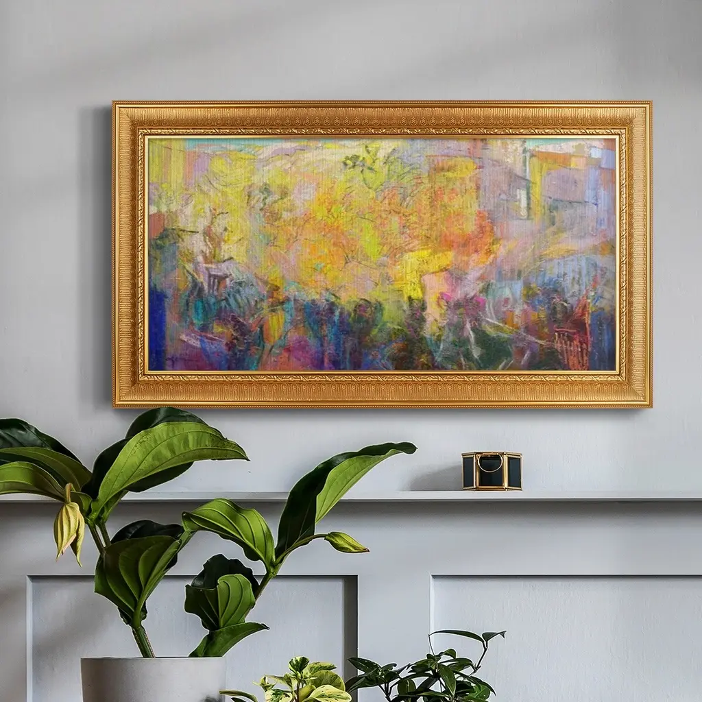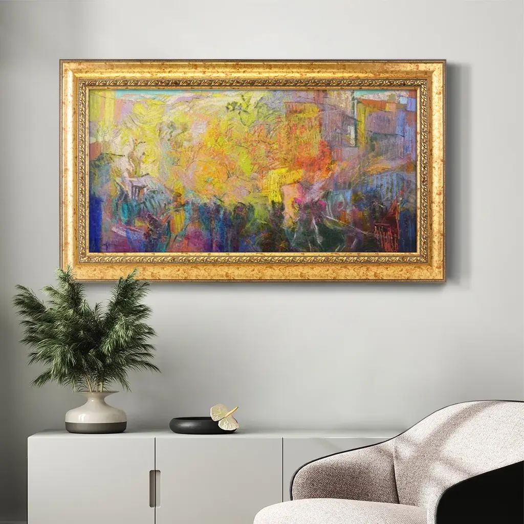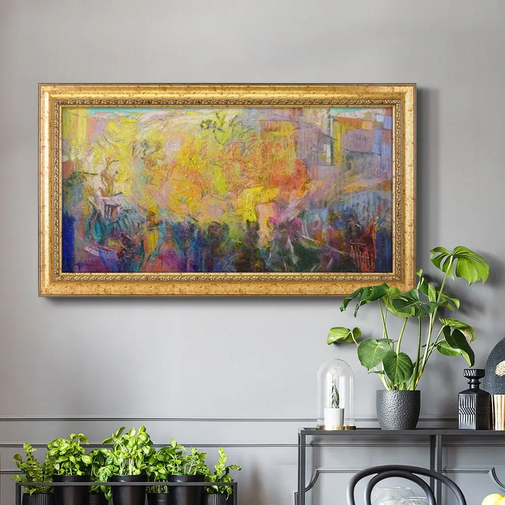 Incantanta Premium Framed Canvas- Ready to Hang A Premium Framed Canvas created to last. Framed in distressed wood and available in an array of sizes and colors Featuring a beveled a solid wood stretcher bar, each piece comes ready to hand 3 SIZES AVAILABLE 21''X37'' - Overall Size 25''X45'' - Overall Size 29''x53'' - Overall Size Each piece is made to order. Each piece comes with hanging hardware. Made in the USA Ready to Hang Giclee Paper Print Acrylic Glass Beveled Matt Board