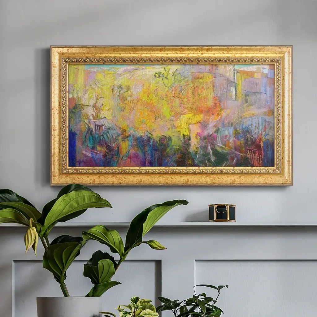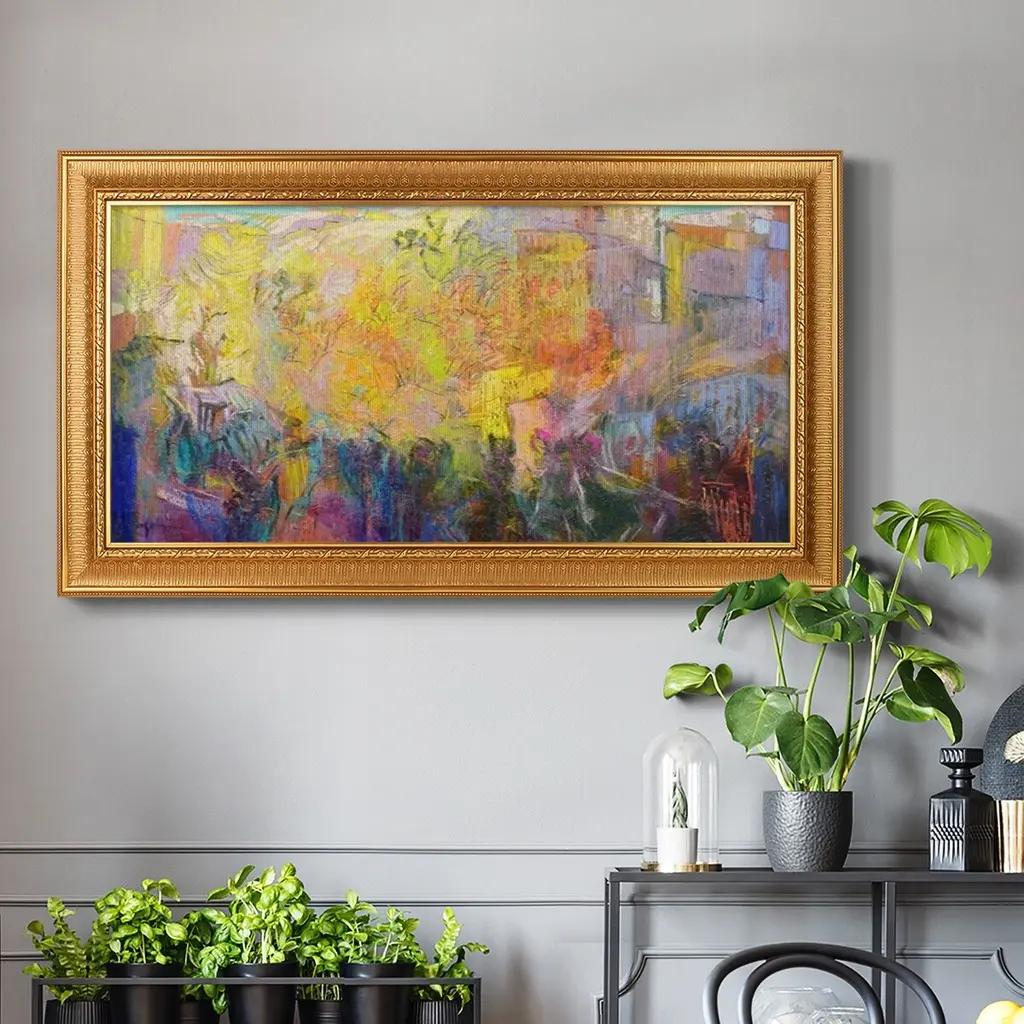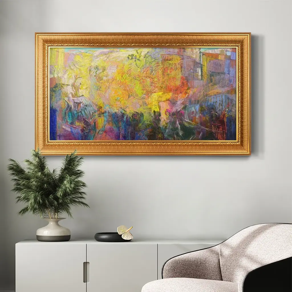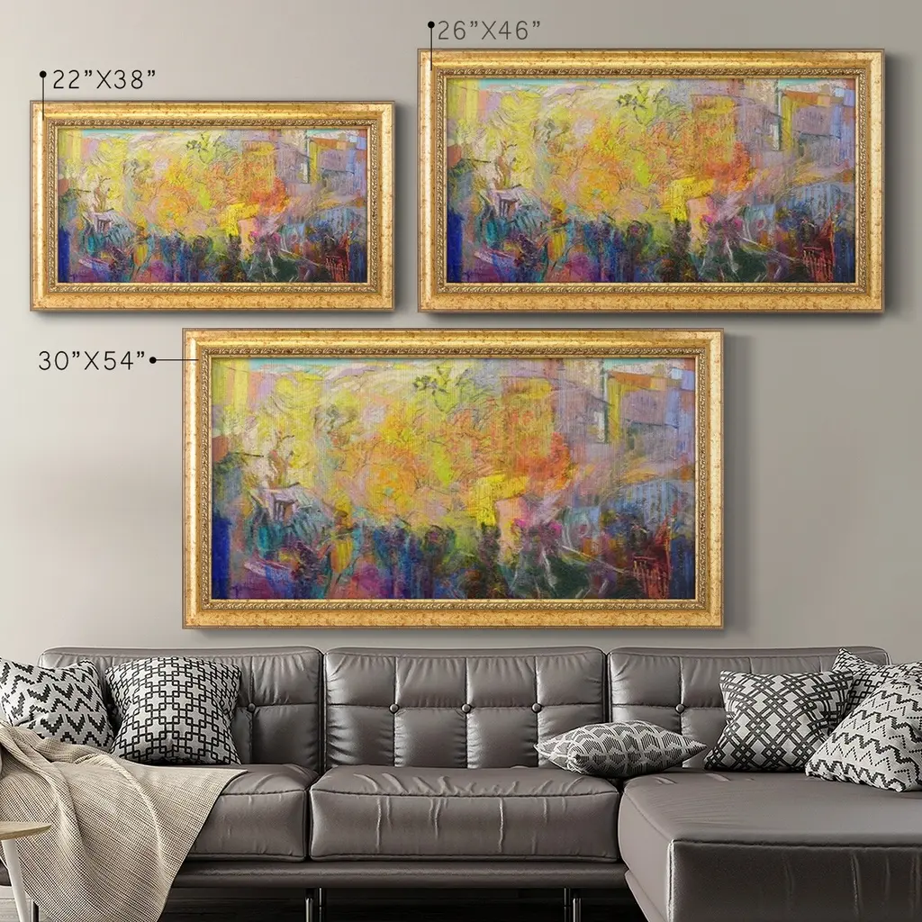 Incantanta Premium Framed Canvas- Ready to Hang A Premium Framed Canvas created to last. Framed in distressed wood and available in an array of sizes and colors Featuring a beveled a solid wood stretcher bar, each piece comes ready to hand 3 SIZES AVAILABLE 21''X37'' - Overall Size 25''X45'' - Overall Size 29''x53'' - Overall Size Each piece is made to order. Each piece comes with hanging hardware. Made in the USA Ready to Hang Giclee Paper Print Acrylic Glass Beveled Matt Board