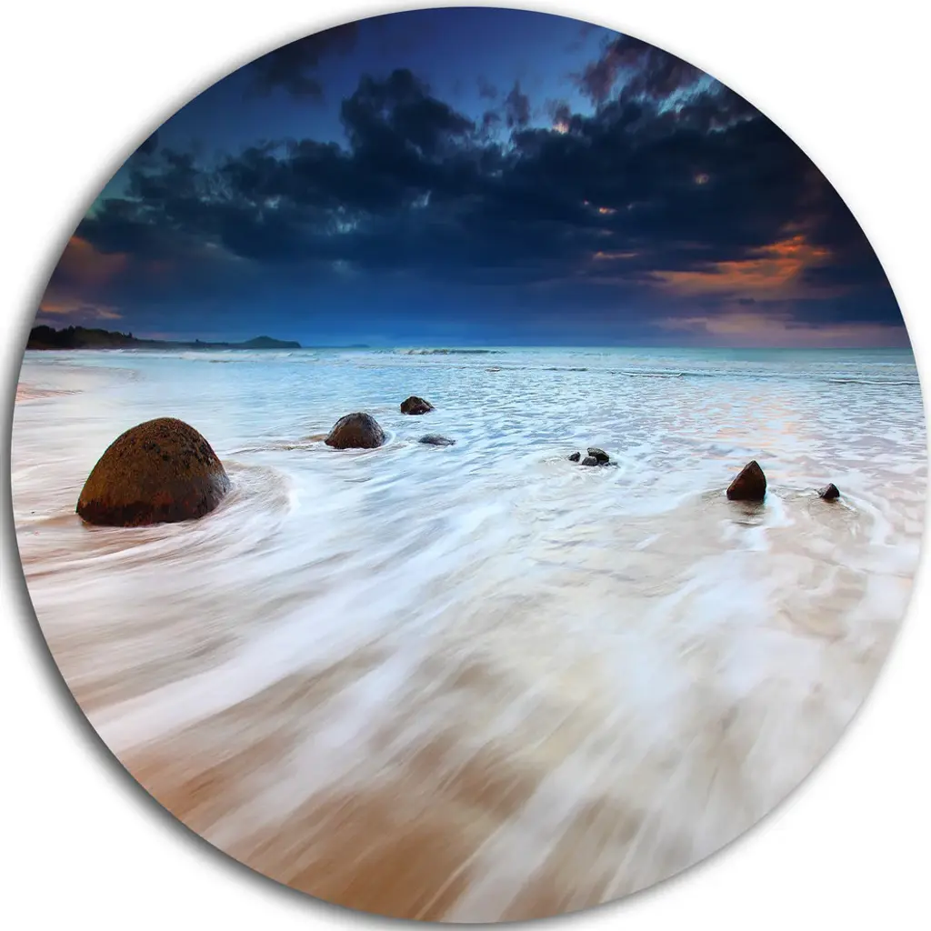 Incredible Sunset With White Waves, Seashore Round Metal Wall Art, 11"