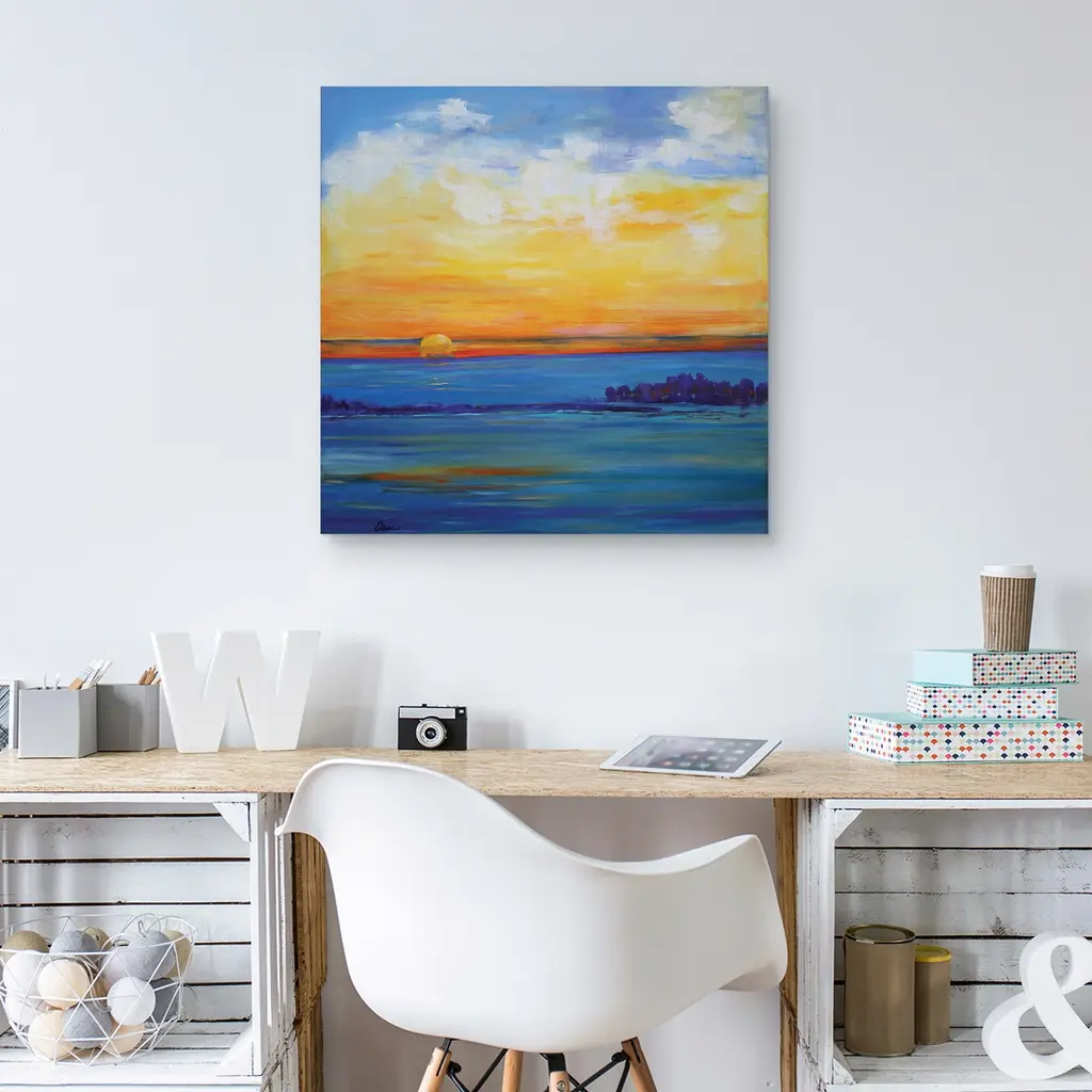 Independence Day Sunset by Alexi Fine Canvas Art Print is produced with printing that covers the entirety of the canvas for a sleek and stylish museum-quality look. Our framed prints are made by expert craftsmen who strive to make each canvas the masterpiece