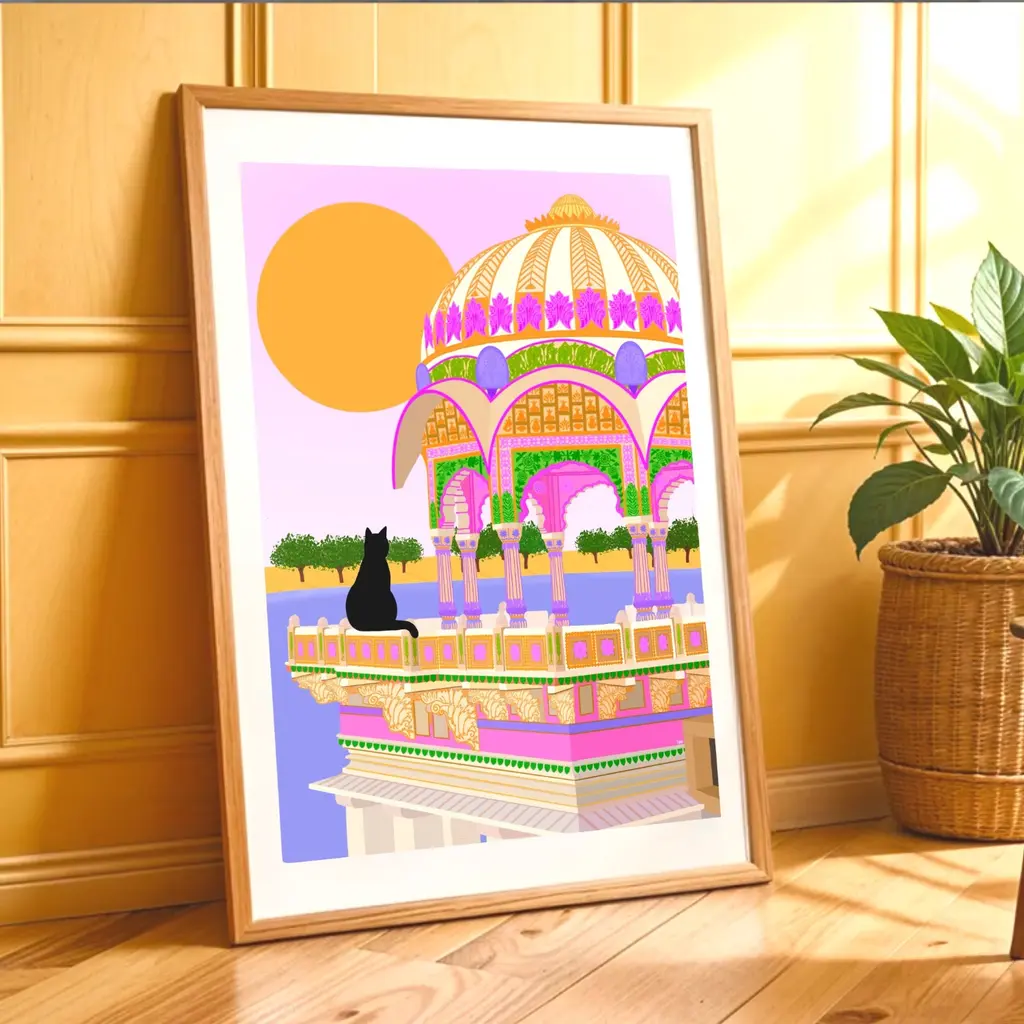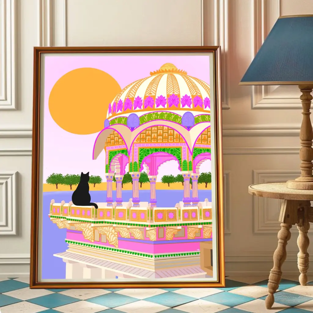 India Cat - Art Print - Medium Illustrated by Maria. This print is perfect for all cat lovers alike! Printed in the U.K.Printed on premium matte, fine art, archival paperPaper weight: 230 gsmSold without a frame.