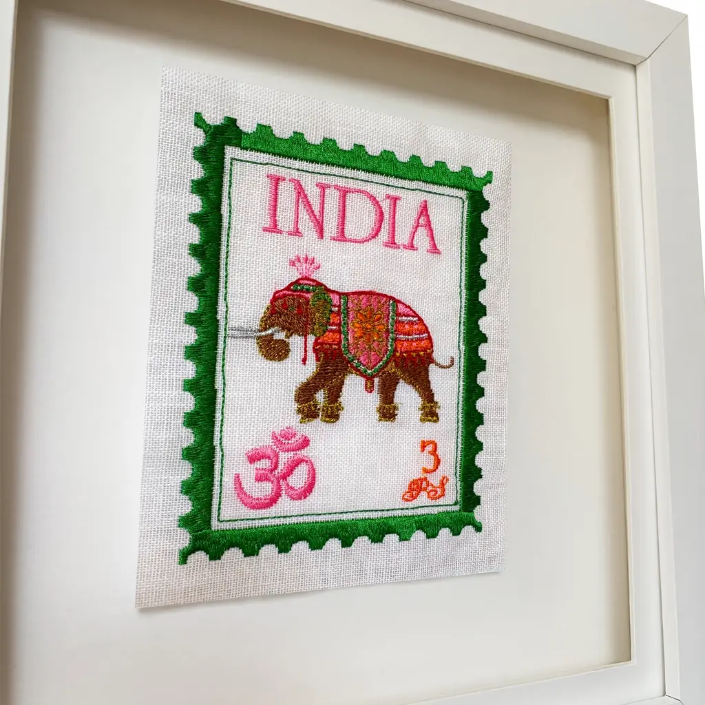 Hello, I’m Emma the owner of Lilly Loves - an embroidery studio located in London.I wanted to create a range of unique embroidered stamps from all over the world, inspired by India; these are bright and fun with a playful twist. We stitch all of these in our London studio and use beautiful floating frames. 10"x10" inches 3D Deep Box Frame