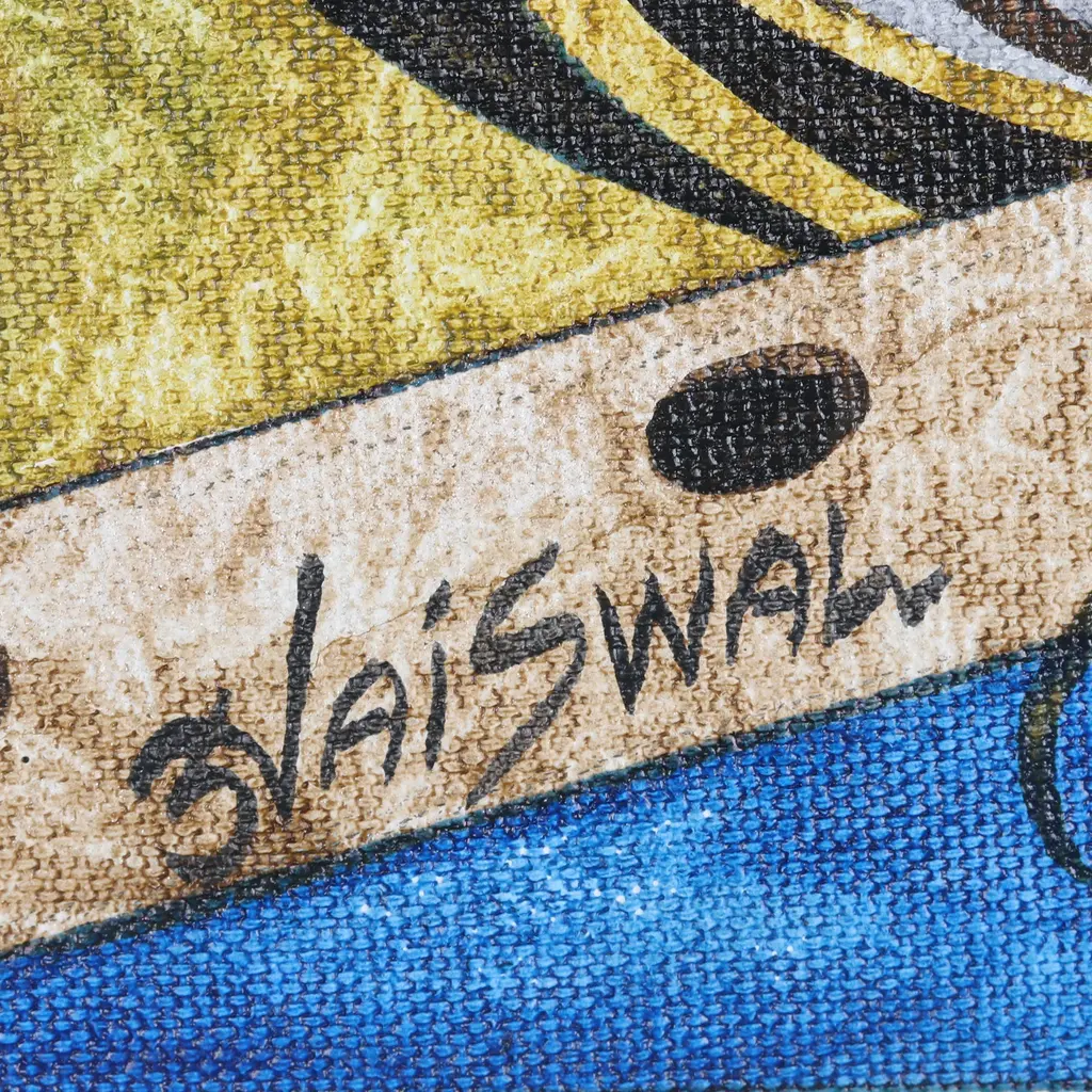 "In India, peacocks are symbol of purity and so they find a place on the crown of Lord Krishna," says Indian artist Sunil Jaiswal of his gorgeous acrylic work. Rendered in green and blue jewel tones, Jaiswal's painting channels the beauty and elegance of the majestic peacock.
