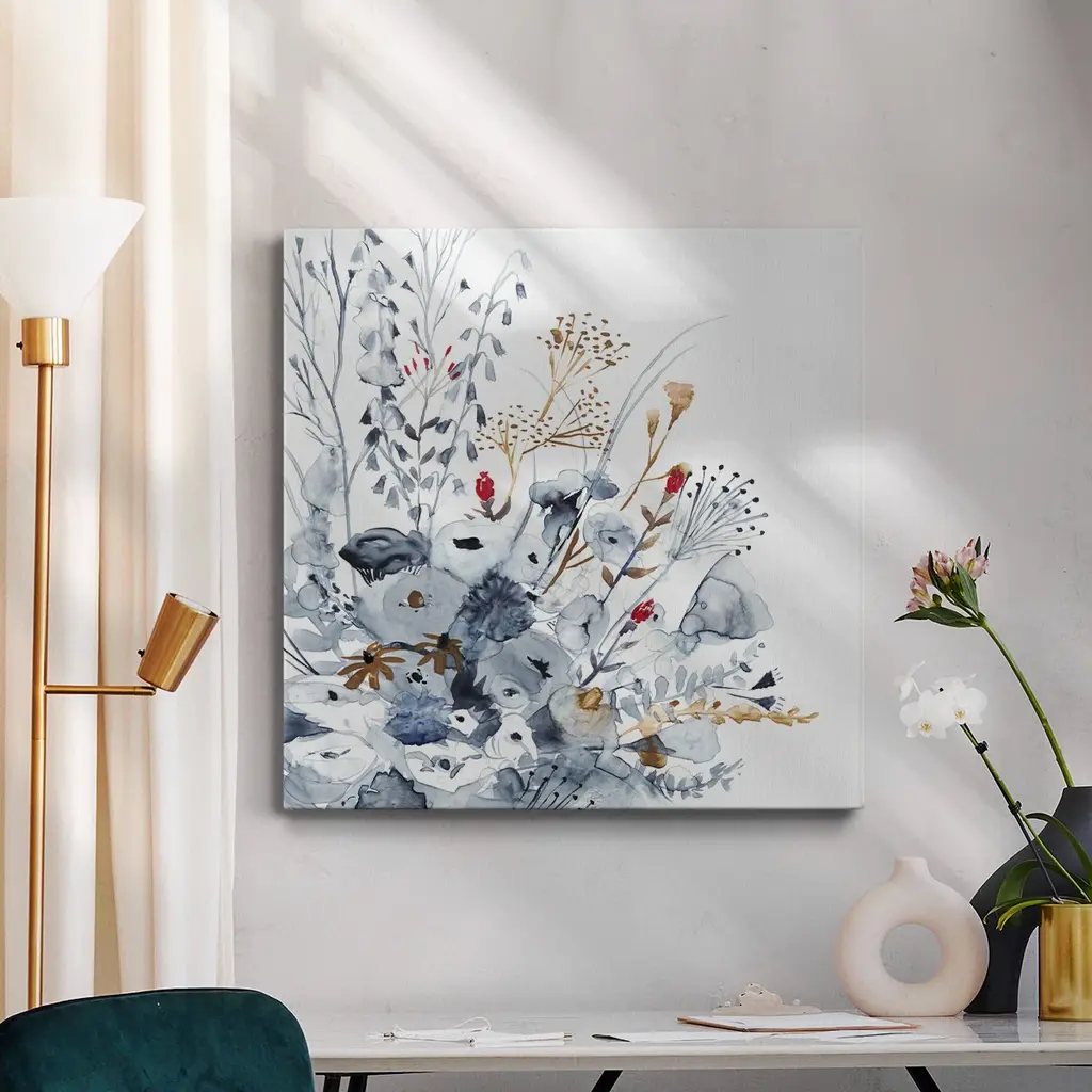 Indigo & Ochre II-Premium Gallery Wrapped Canvas - Ready to Hang A premium hand stretched gallery wrapped canvas print created to last. Featuring a beveled a solid wood stretcher bar, each piece comes ready to hand 5 SIZES AVAILABLE 10''X10'' - Overall Size 16''x16'' - Overall Size 24''x24'' - Overall Size 32''x32'' - Overall Size 40''x40'' - Overall Size Each piece is made to order. Built to Last Each piece comes ready to hang Solid wood stretcher Fade and Water resistant Made domestically