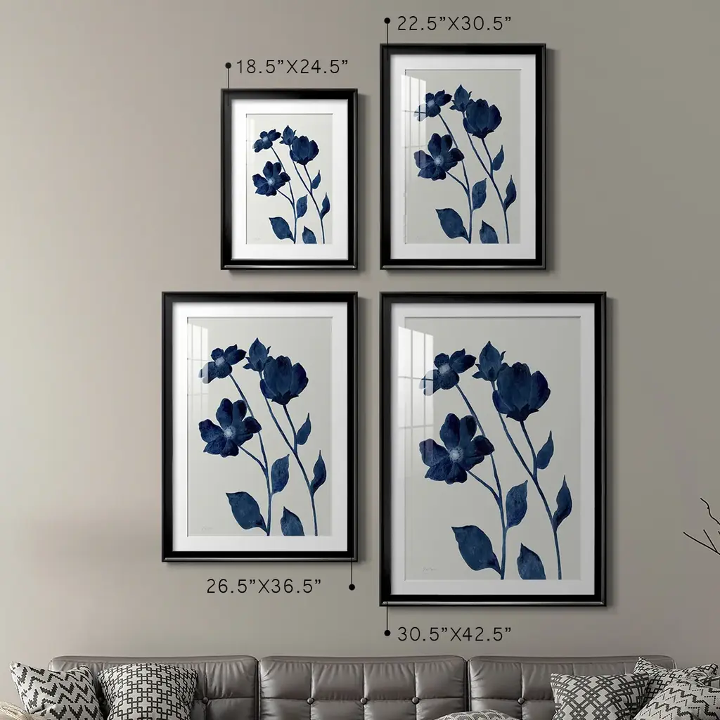 Indigo Bloom I Premium Framed Print - Ready to Hang A Premium Framed Print created to last. Framed in distressed wood and available in an array of sizes and colors Featuring a beveled a solid wood stretcher bar, each piece comes ready to hand 4 SIZES AVAILABLE 30.5''X42.5'' - Overall Size 26.5'X36.5'' - Overall Size 22.5''x30.5'' - Overall Size 18.5''x24.5'' - Overall Size Each piece is made to order. Each piece comes with hanging hardware. Made in the USA Ready to Hang Giclee Paper Print Acrylic Glass Beveled Matt Board