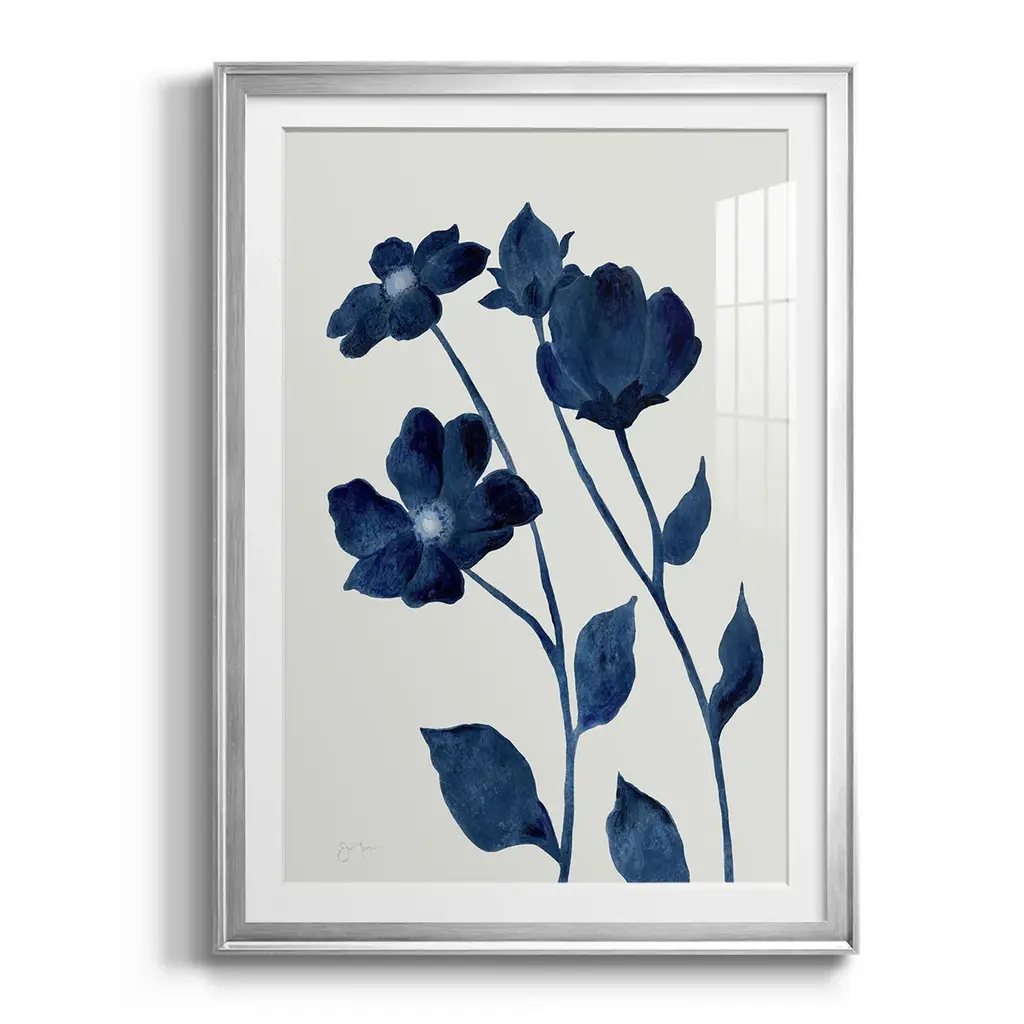 Indigo Bloom I Premium Framed Print - Ready to Hang A Premium Framed Print created to last. Framed in distressed wood and available in an array of sizes and colors Featuring a beveled a solid wood stretcher bar, each piece comes ready to hand 4 SIZES AVAILABLE 30.5''X42.5'' - Overall Size 26.5'X36.5'' - Overall Size 22.5''x30.5'' - Overall Size 18.5''x24.5'' - Overall Size Each piece is made to order. Each piece comes with hanging hardware. Made in the USA Ready to Hang Giclee Paper Print Acrylic Glass Beveled Matt Board