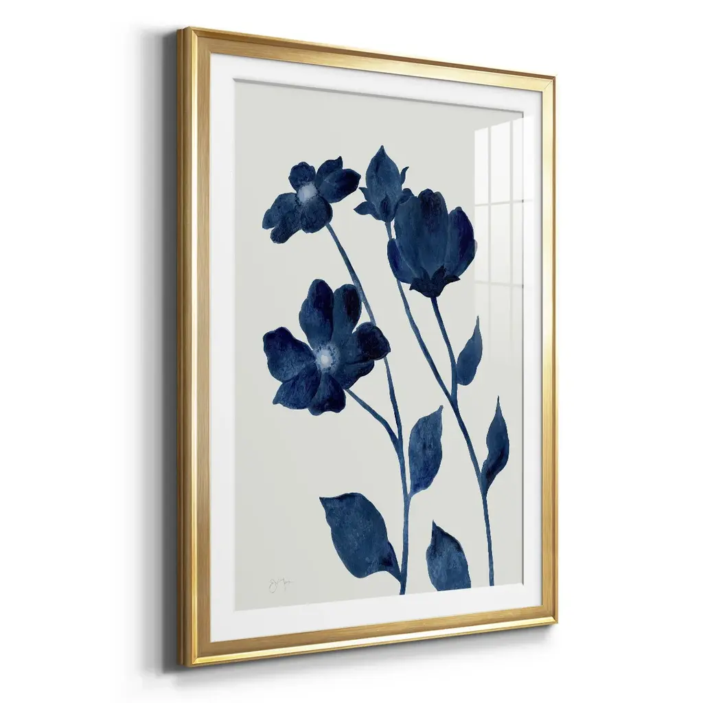 Indigo Bloom I Premium Framed Print - Ready to Hang A Premium Framed Print created to last. Framed in distressed wood and available in an array of sizes and colors Featuring a beveled a solid wood stretcher bar, each piece comes ready to hand 4 SIZES AVAILABLE 30.5''X42.5'' - Overall Size 26.5'X36.5'' - Overall Size 22.5''x30.5'' - Overall Size 18.5''x24.5'' - Overall Size Each piece is made to order. Each piece comes with hanging hardware. Made in the USA Ready to Hang Giclee Paper Print Acrylic Glass Beveled Matt Board