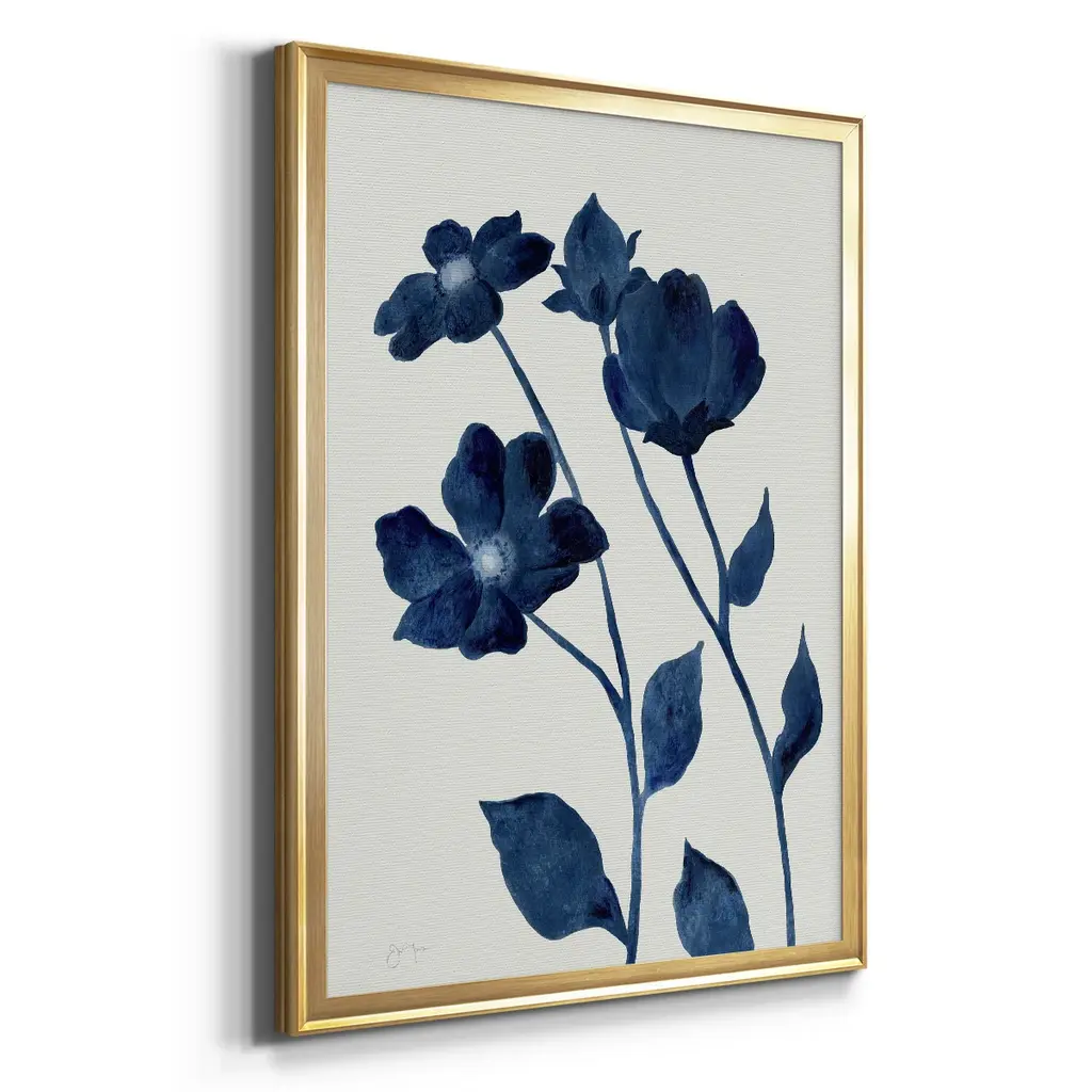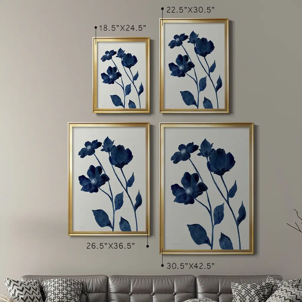Indigo Bloom I Premium Framed Print - Ready to Hang A Premium Framed Print created to last. Framed in distressed wood and available in an array of sizes and colors Featuring a beveled a solid wood stretcher bar, each piece comes ready to hand 4 SIZES AVAILABLE 30.5''X42.5'' - Overall Size 26.5'X36.5'' - Overall Size 22.5''x30.5'' - Overall Size 18.5''x24.5'' - Overall Size Each piece is made to order. Each piece comes with hanging hardware. Made in the USA Ready to Hang
