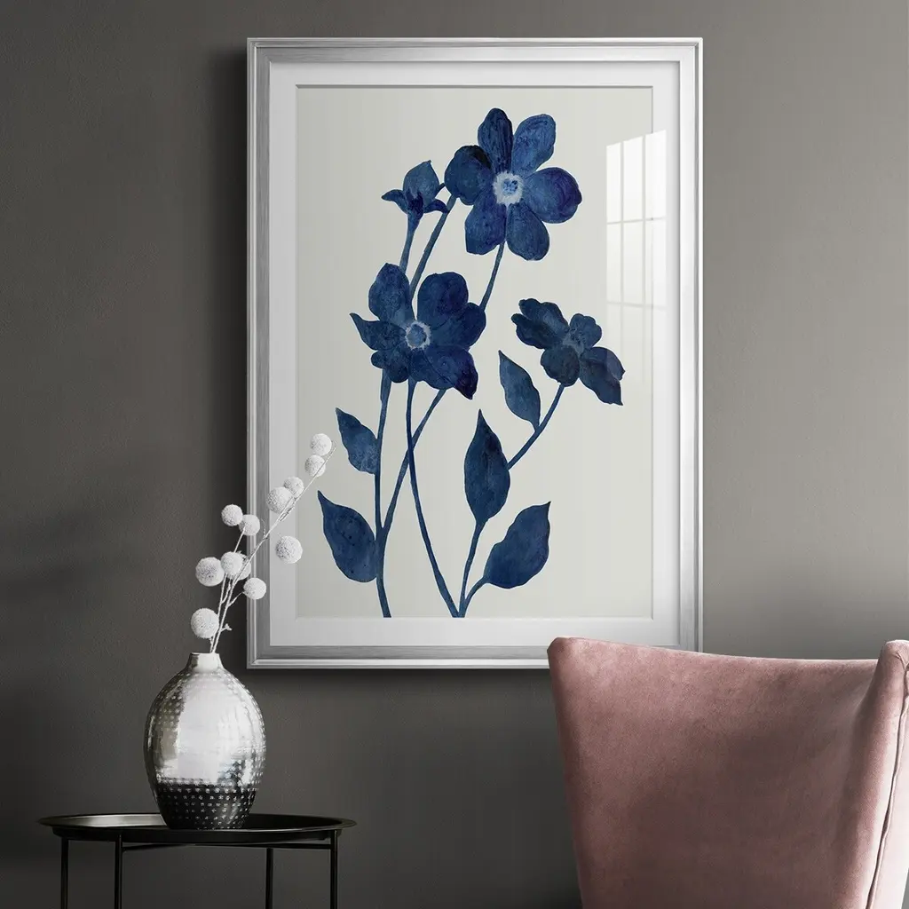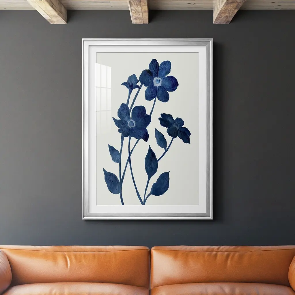 Indigo Bloom Ii Premium Framed Print - Ready To Hang - 22.5x30.5 - Silver