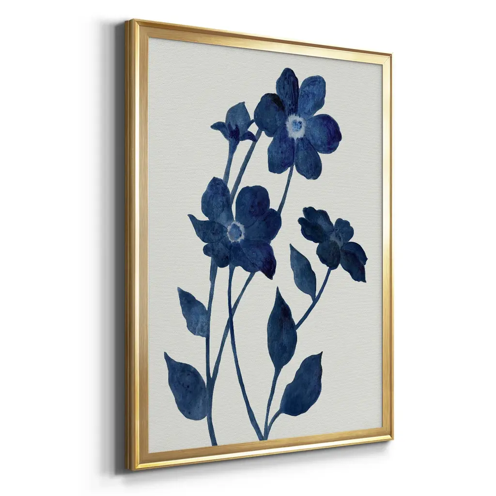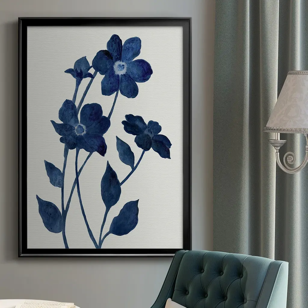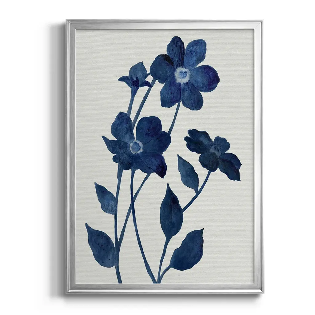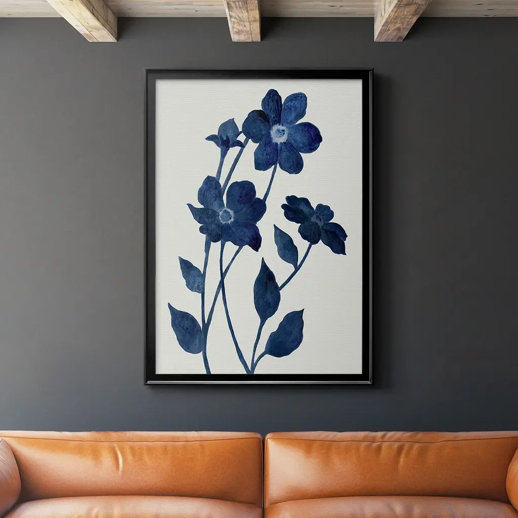 Indigo Bloom II Premium Framed Print - Ready to Hang A Premium Framed Print created to last. Framed in distressed wood and available in an array of sizes and colors Featuring a beveled a solid wood stretcher bar, each piece comes ready to hand 4 SIZES AVAILABLE 30.5''X42.5'' - Overall Size 26.5'X36.5'' - Overall Size 22.5''x30.5'' - Overall Size 18.5''x24.5'' - Overall Size Each piece is made to order. Each piece comes with hanging hardware. Made in the USA Ready to Hang