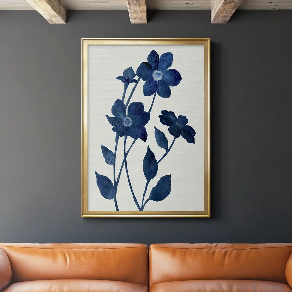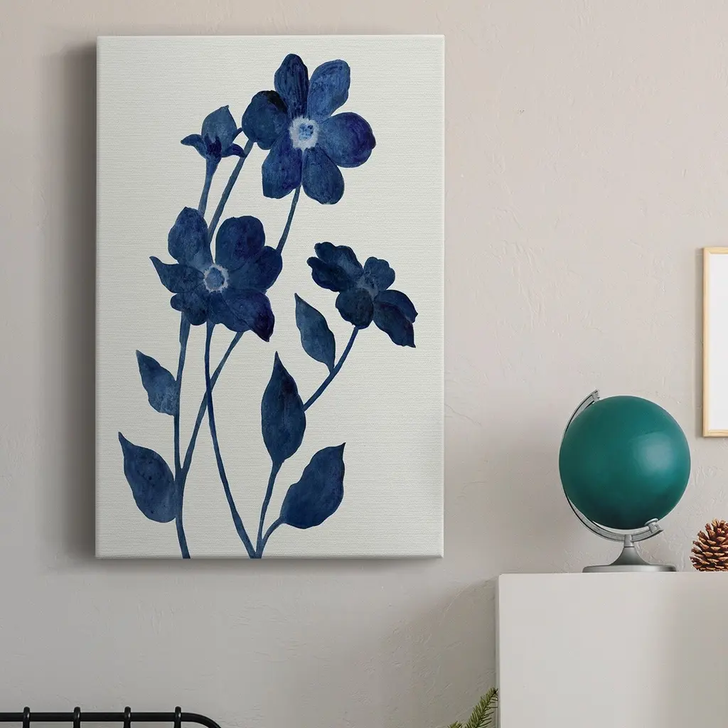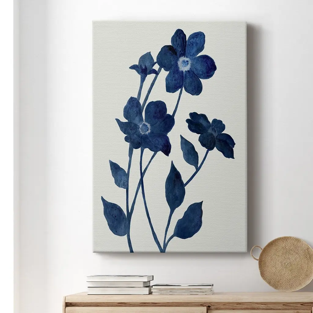 Indigo Bloom II Premium Gallery Wrapped Canvas - Ready to Hang A premium hand stretched gallery wrapped canvas print created to last. Featuring a beveled a solid wood stretcher bar, each piece comes ready to hand 6 SIZES AVAILABLE 8''X12'' - Overall Size 12''X18'' - Overall Size 18''X27'' - Overall Size 24''x36'' - Overall Size 32''x48'' - Overall Size 40''x60'' - Overall Size Each piece is made to order. Built to Last Each piece comes ready to hang Solid wood stretcher Fade and Water resistant Made domestically