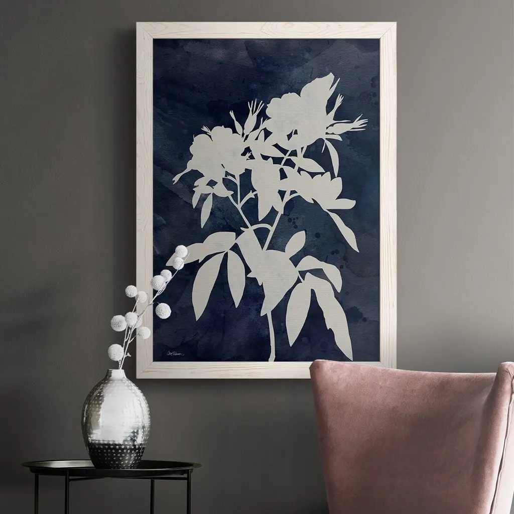 Indigo Botanical I Revisited-Premium Framed Canvas - Ready To Hang - 27.5x37.5 - Walnut