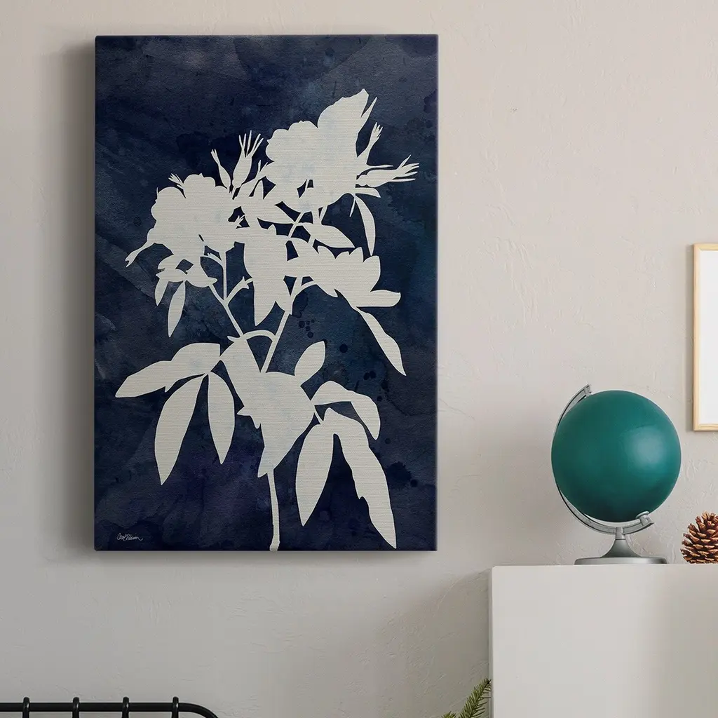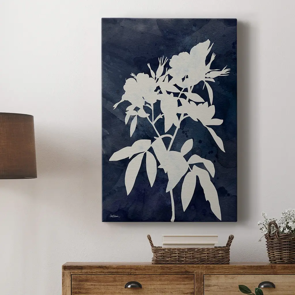 Indigo Botanical I Revisited Premium Gallery Wrapped Canvas - Ready to Hang A premium hand stretched gallery wrapped canvas print created to last. Featuring a beveled a solid wood stretcher bar, each piece comes ready to hand 6 SIZES AVAILABLE 8''X12'' - Overall Size 12''X18'' - Overall Size 18''X27'' - Overall Size 24''x36'' - Overall Size 32''x48'' - Overall Size 40''x60'' - Overall Size Each piece is made to order. Built to Last Each piece comes ready to hang Solid wood stretcher Fade and Water resistant Made domestically
