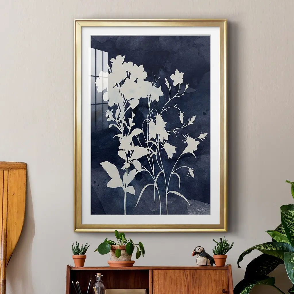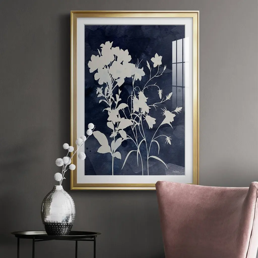 Indigo Botanical Ii Revisited Premium Framed Print - Ready To Hang - 30.5x42.5 - Silver