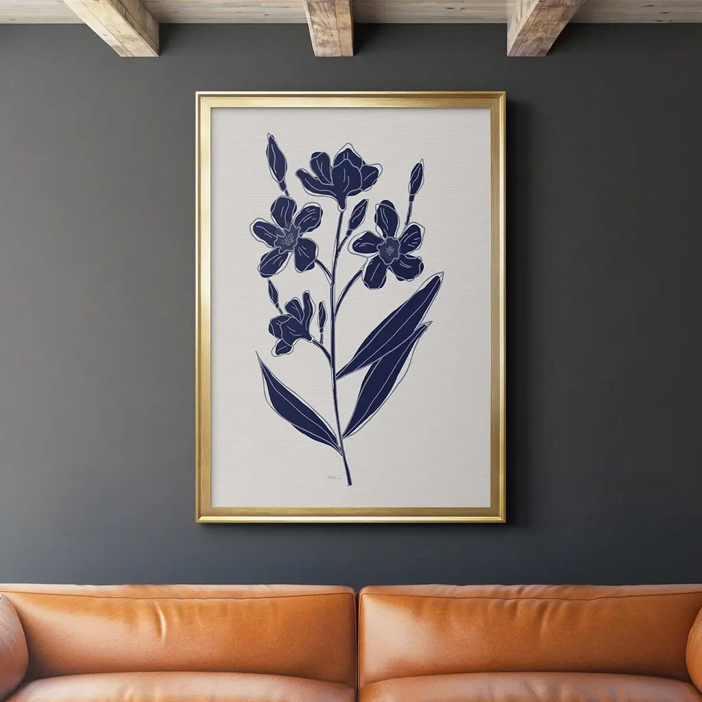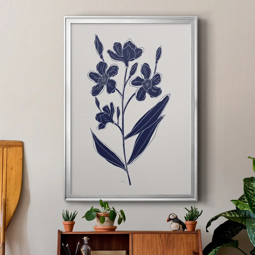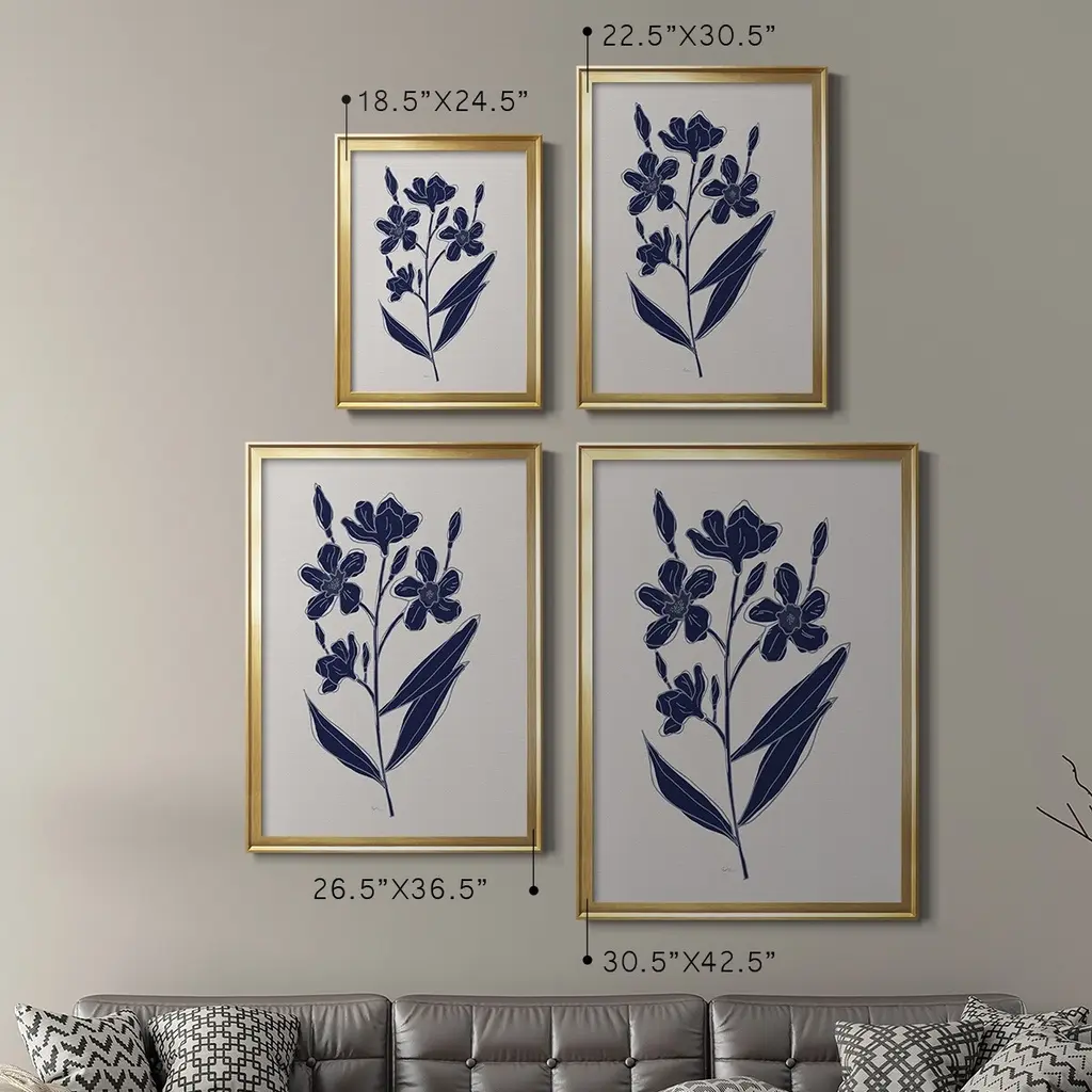 Indigo Botanical Study I Premium Framed Print - Ready to Hang A Premium Framed Print created to last. Framed in distressed wood and available in an array of sizes and colors Featuring a beveled a solid wood stretcher bar, each piece comes ready to hand 4 SIZES AVAILABLE 30.5''X42.5'' - Overall Size 26.5'X36.5'' - Overall Size 22.5''x30.5'' - Overall Size 18.5''x24.5'' - Overall Size Each piece is made to order. Each piece comes with hanging hardware. Made in the USA Ready to Hang