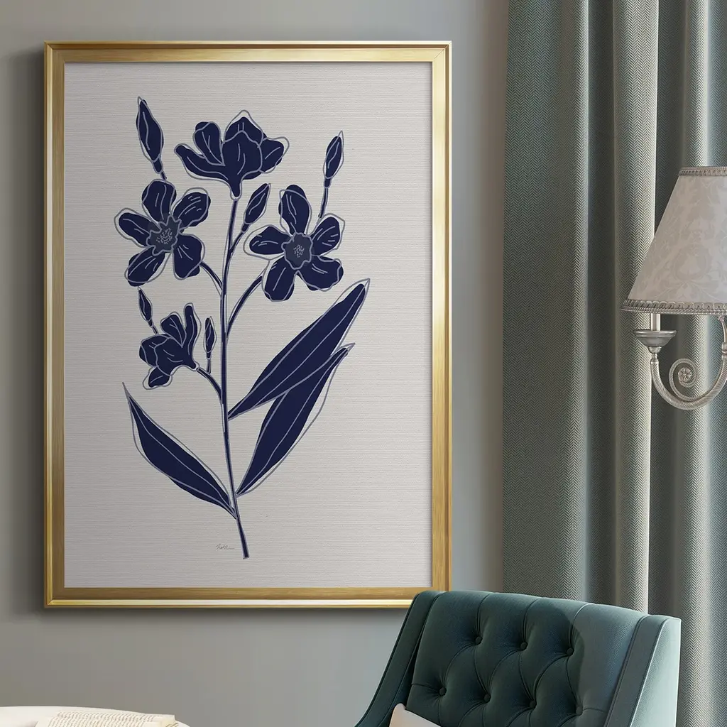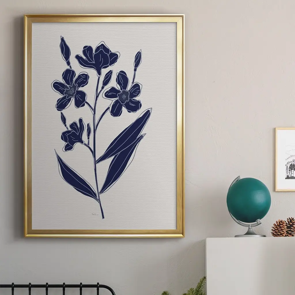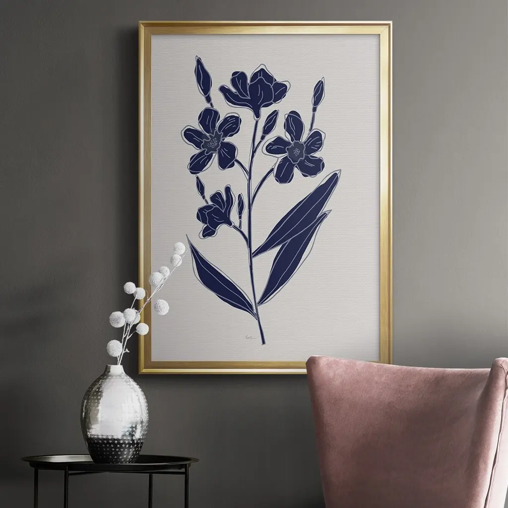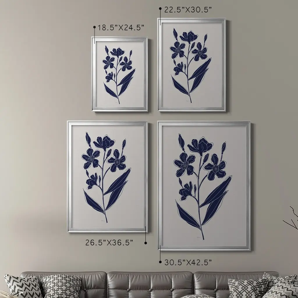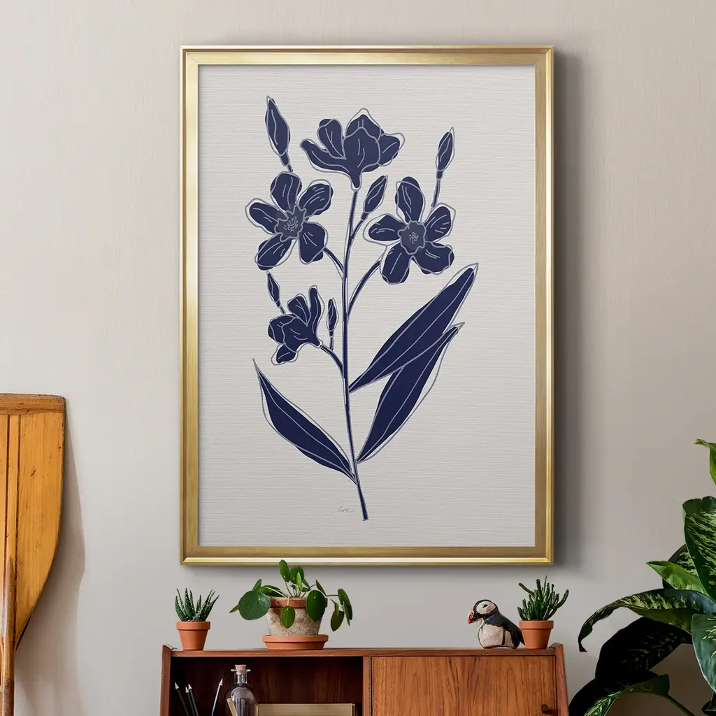 Indigo Botanical Study I Premium Framed Print - Ready to Hang A Premium Framed Print created to last. Framed in distressed wood and available in an array of sizes and colors Featuring a beveled a solid wood stretcher bar, each piece comes ready to hand 4 SIZES AVAILABLE 30.5''X42.5'' - Overall Size 26.5'X36.5'' - Overall Size 22.5''x30.5'' - Overall Size 18.5''x24.5'' - Overall Size Each piece is made to order. Each piece comes with hanging hardware. Made in the USA Ready to Hang
