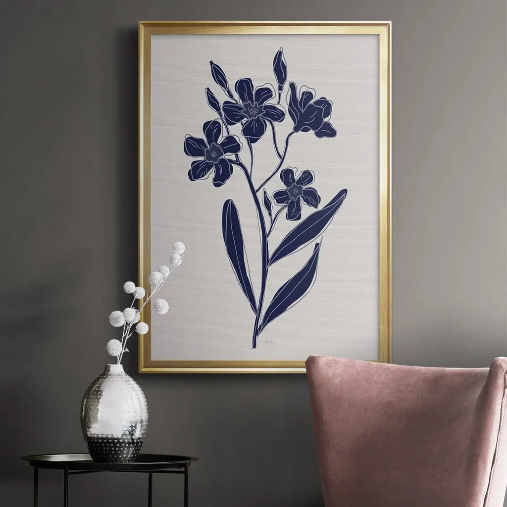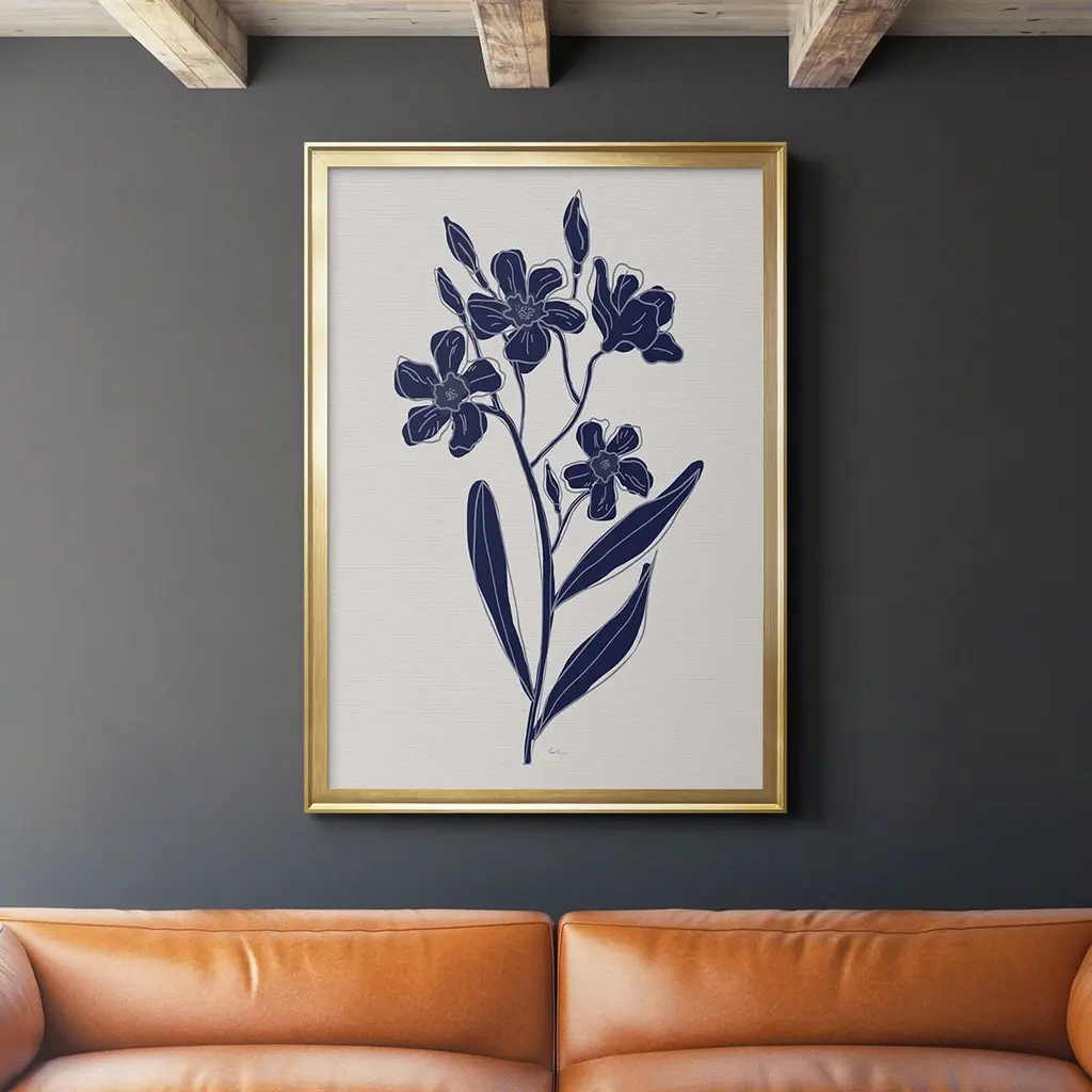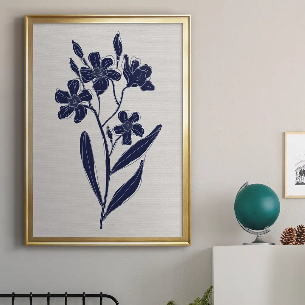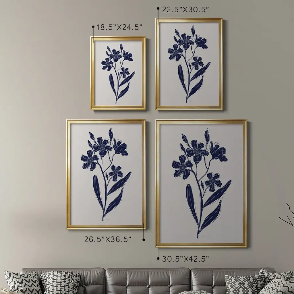 Indigo Botanical Study II Premium Framed Print - Ready to Hang A Premium Framed Print created to last. Framed in distressed wood and available in an array of sizes and colors Featuring a beveled a solid wood stretcher bar, each piece comes ready to hand 4 SIZES AVAILABLE 30.5''X42.5'' - Overall Size 26.5'X36.5'' - Overall Size 22.5''x30.5'' - Overall Size 18.5''x24.5'' - Overall Size Each piece is made to order. Each piece comes with hanging hardware. Made in the USA Ready to Hang