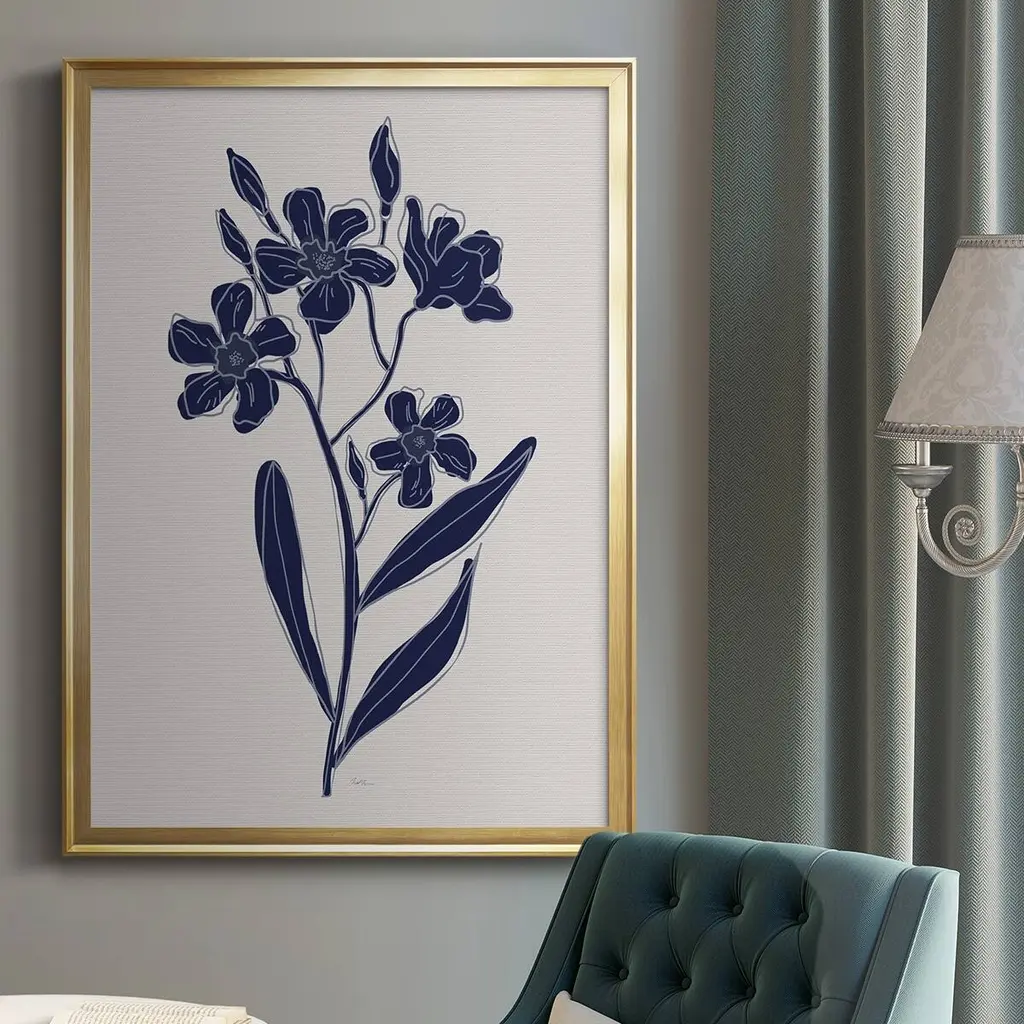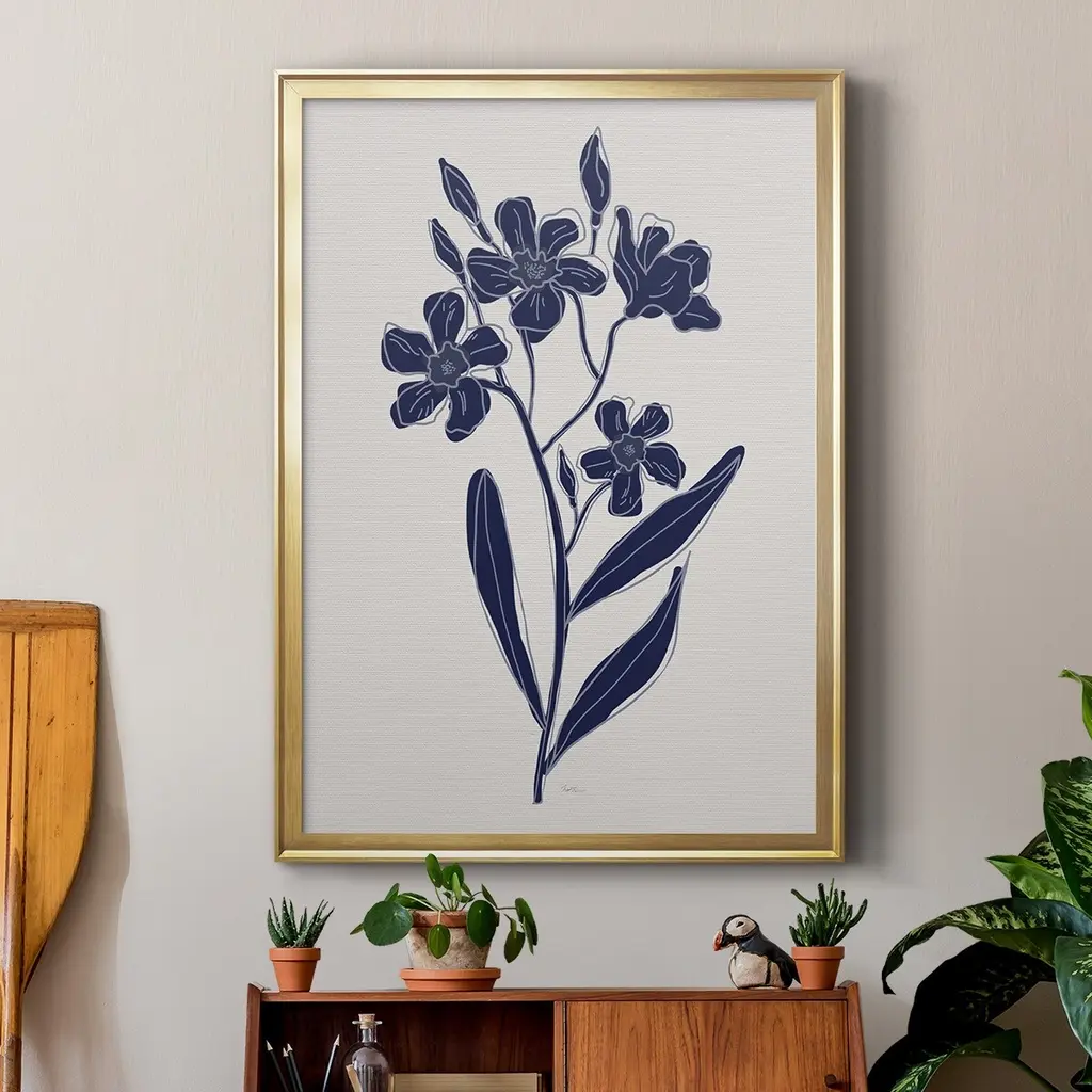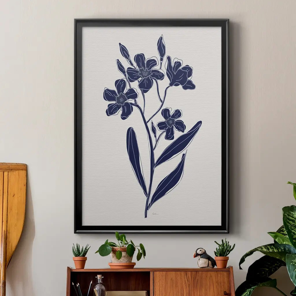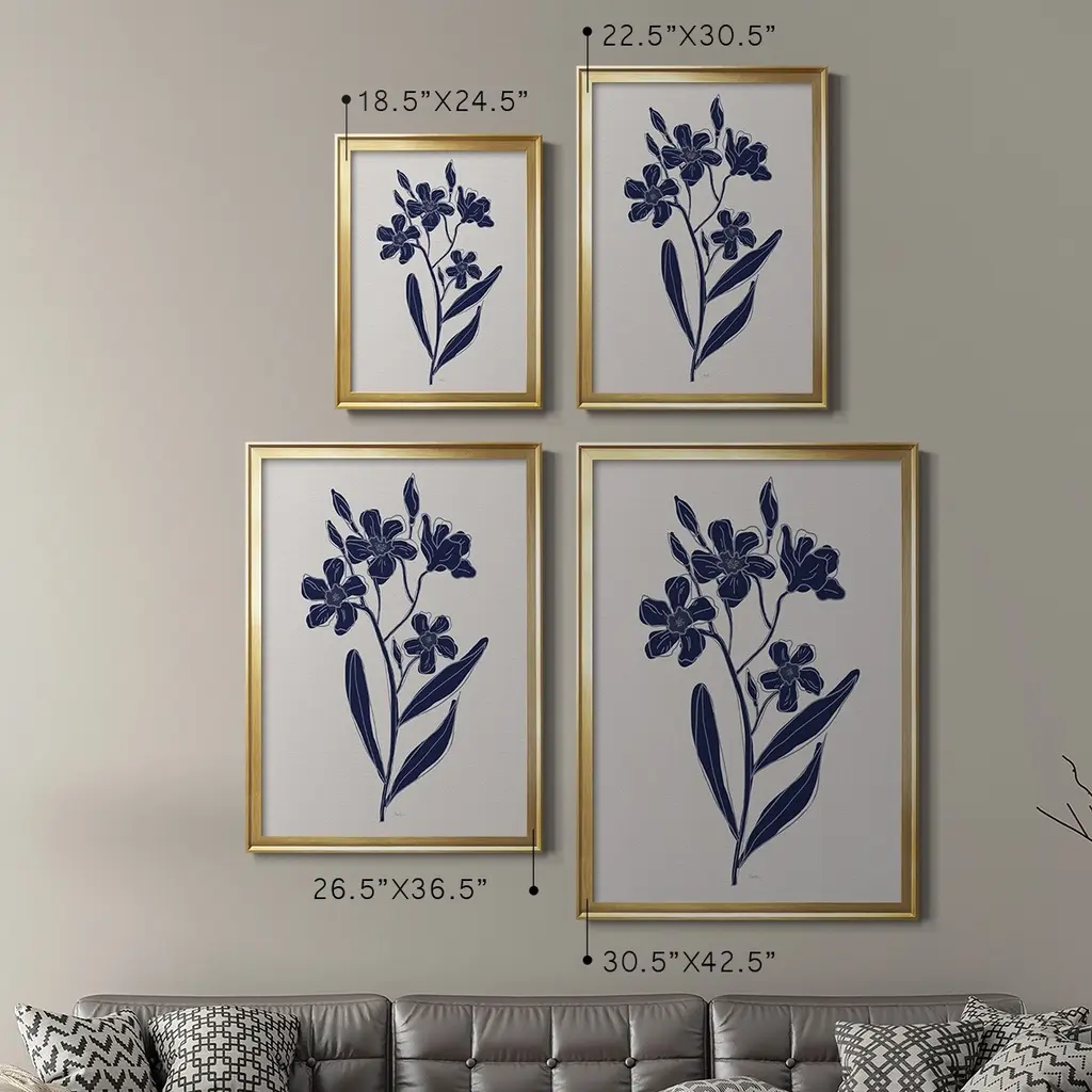 Indigo Botanical Study II Premium Framed Print - Ready to Hang A Premium Framed Print created to last. Framed in distressed wood and available in an array of sizes and colors Featuring a beveled a solid wood stretcher bar, each piece comes ready to hand 4 SIZES AVAILABLE 30.5''X42.5'' - Overall Size 26.5'X36.5'' - Overall Size 22.5''x30.5'' - Overall Size 18.5''x24.5'' - Overall Size Each piece is made to order. Each piece comes with hanging hardware. Made in the USA Ready to Hang