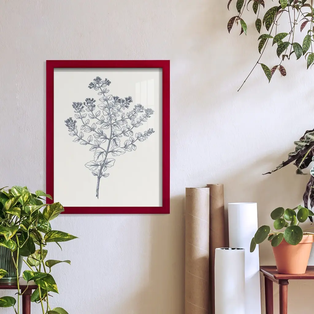 Indigo Botany Study VI -EZ SWITCH Framed Print w/glass-Cherry Red A delightful, framed print. Featuring a solid wood frame with real wood glass. This premium print is giclee quality. In addition, every frame features a removable back and table top stand. This allows you to change your art in the future or to just stand the art on a table for a new look. We are sure you'll enjoy our new series of EZ SWITCH Framed Art. Solid Wood Frame Real Glass Removable / Replaceable Art Built in Tabletop Stand Sizes range from 4x6 up to 12x15 - buy just one or pair them up as sets as you see fit.