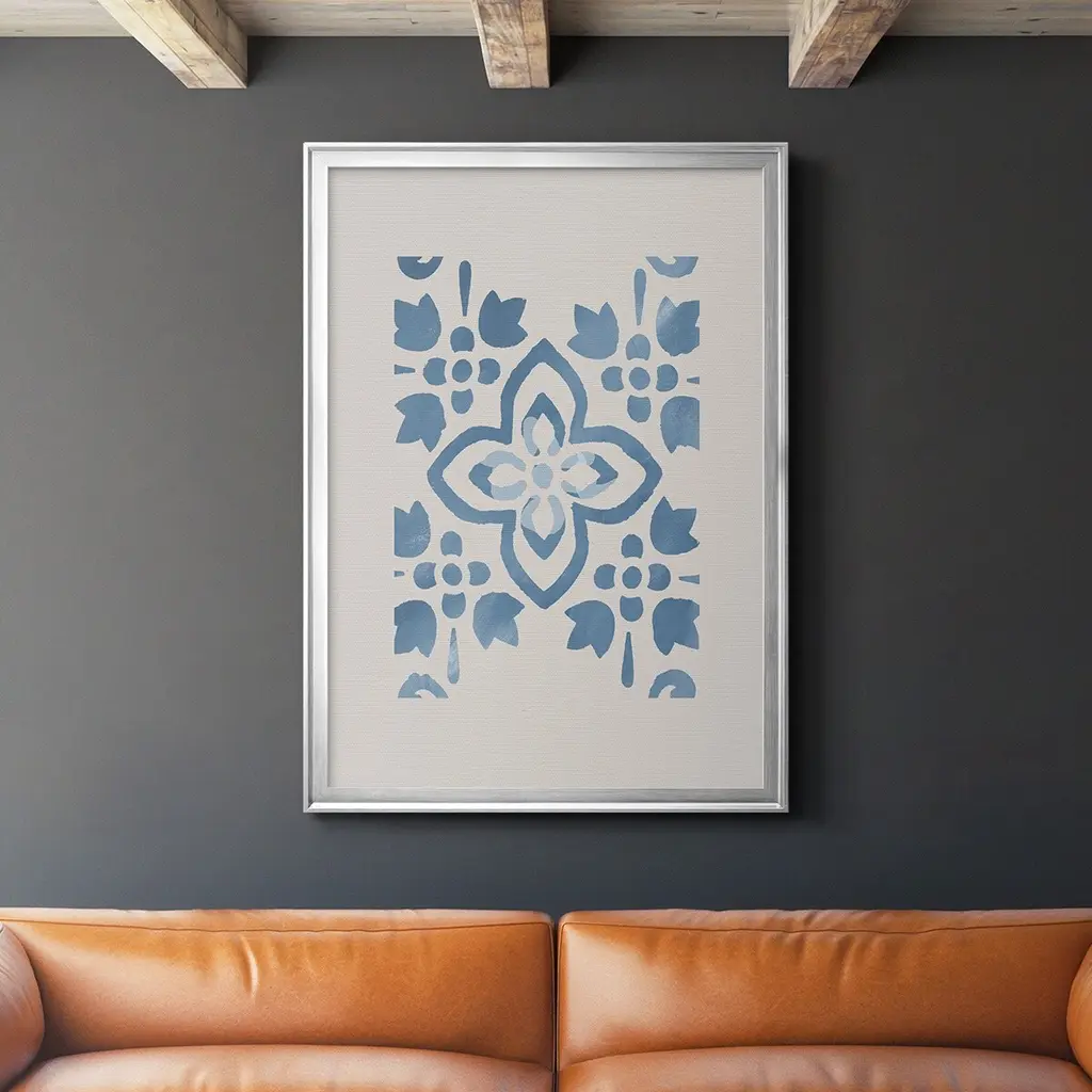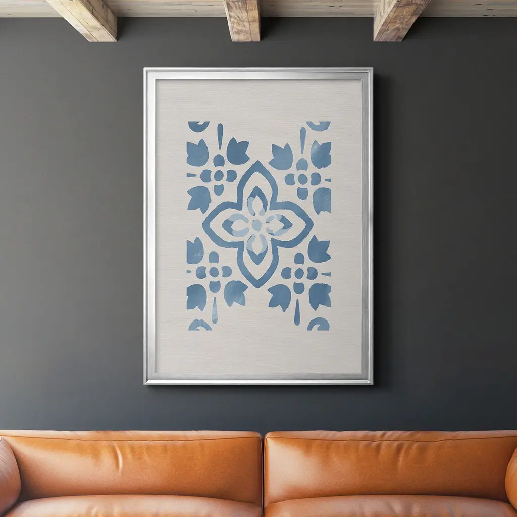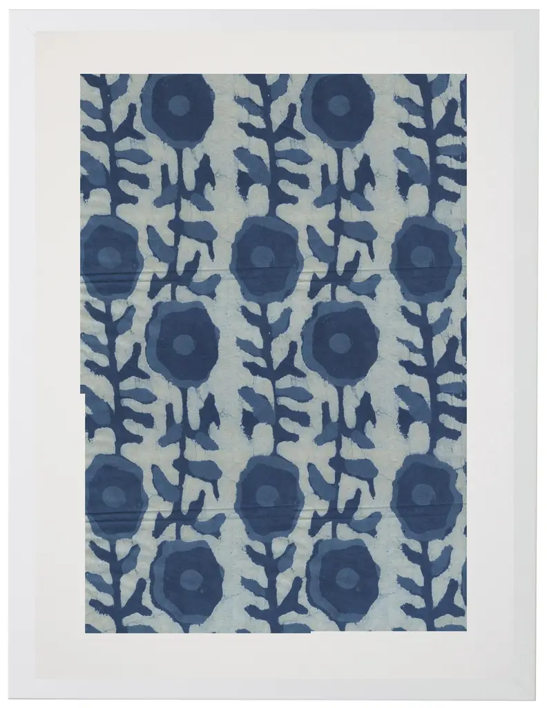 Art Print: Indigo Fabrics I Print In White Shadowbox Dimensions: 19" x 25"