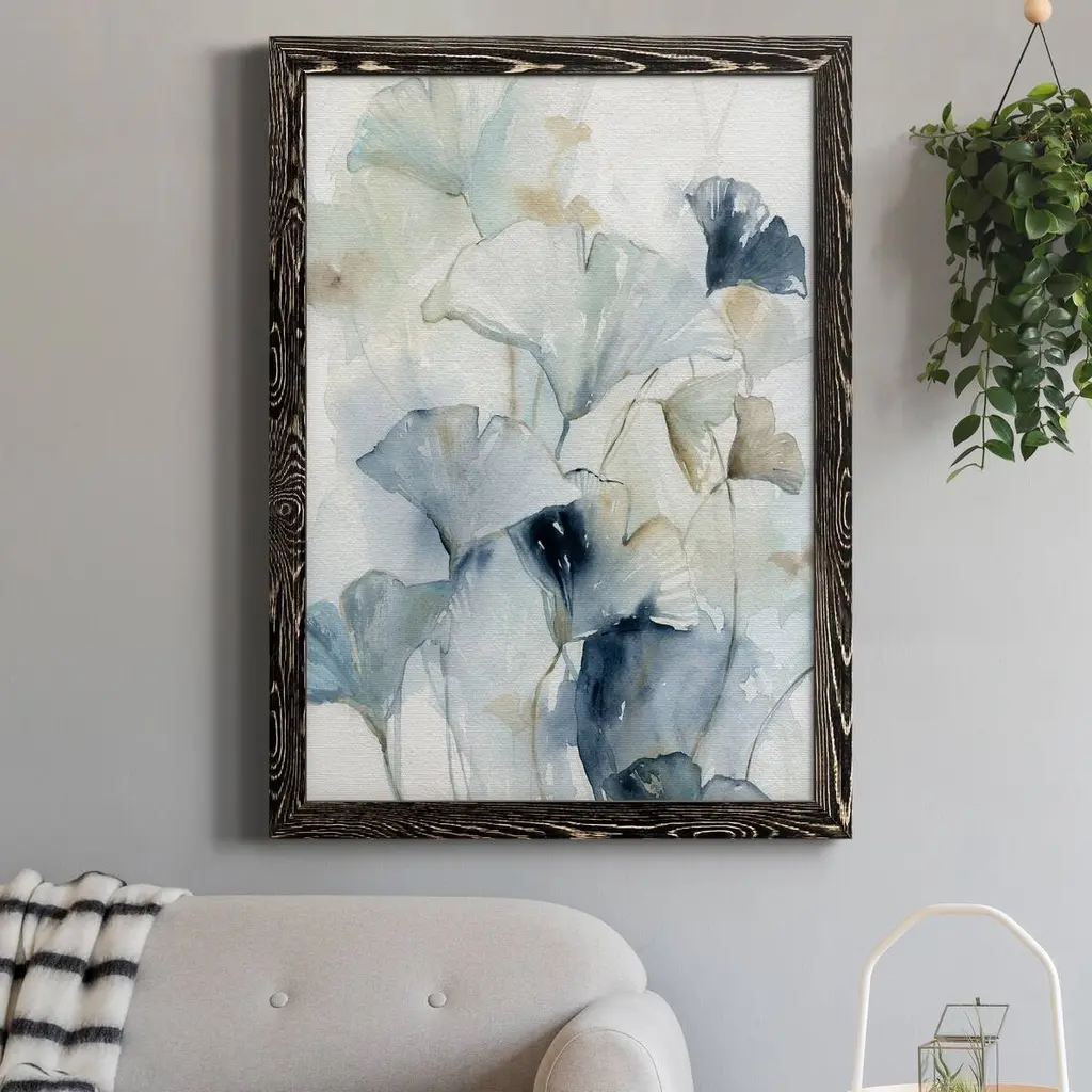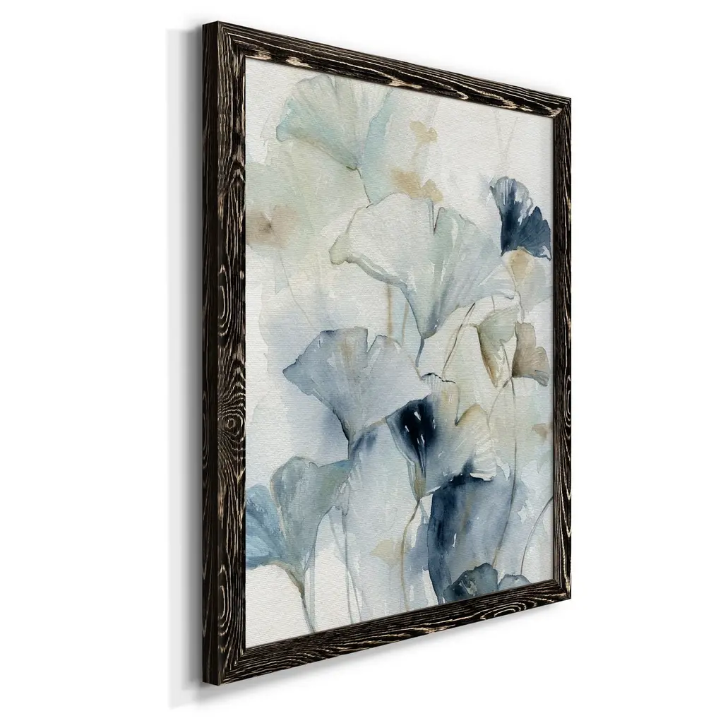 Indigo Ginkgo I-Premium Framed Canvas - Ready to Hang Framed in distressed wood and available in an array of sizes and colors Each piece is joined and assembled by hand and comes ready to hang FRAMED GICLEE CANVAS HAND STRETCHED GALLERY WRAPPED CANVAS READY TO HANG MADE IN THE USA SOLID WOOD FRAME MADE IN USA FADE RESISTANT GICLEE PRINTING on Canvas