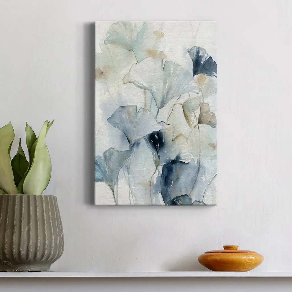 Indigo Ginkgo I Premium Gallery Wrapped Canvas - Ready to Hang A premium hand stretched gallery wrapped canvas print created to last. Featuring a beveled a solid wood stretcher bar, each piece comes ready to hand 5 SIZES AVAILABLE 8''X12'' - Overall Size 16'X20'' - Overall Size 24''x32'' - Overall Size 30''x40'' - Overall Size 36''x48'' - Overall Size Each piece is made to order. Built to Last Each piece comes ready to hang Solid wood stretcher Fade and Water resistant Made domestically