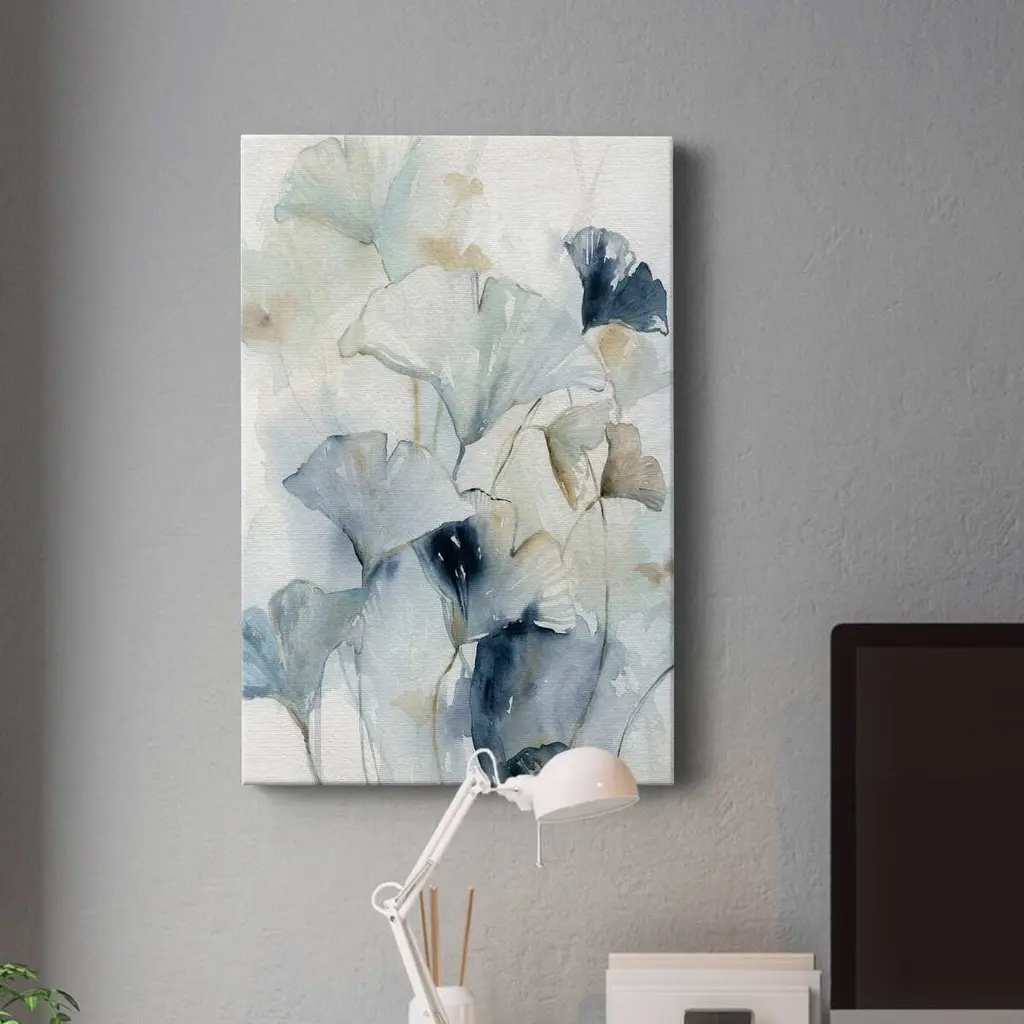 Indigo Ginkgo I Premium Gallery Wrapped Canvas - Ready to Hang A premium hand stretched gallery wrapped canvas print created to last. Featuring a beveled a solid wood stretcher bar, each piece comes ready to hand 5 SIZES AVAILABLE 8''X12'' - Overall Size 16'X20'' - Overall Size 24''x32'' - Overall Size 30''x40'' - Overall Size 36''x48'' - Overall Size Each piece is made to order. Built to Last Each piece comes ready to hang Solid wood stretcher Fade and Water resistant Made domestically