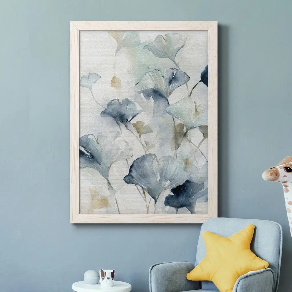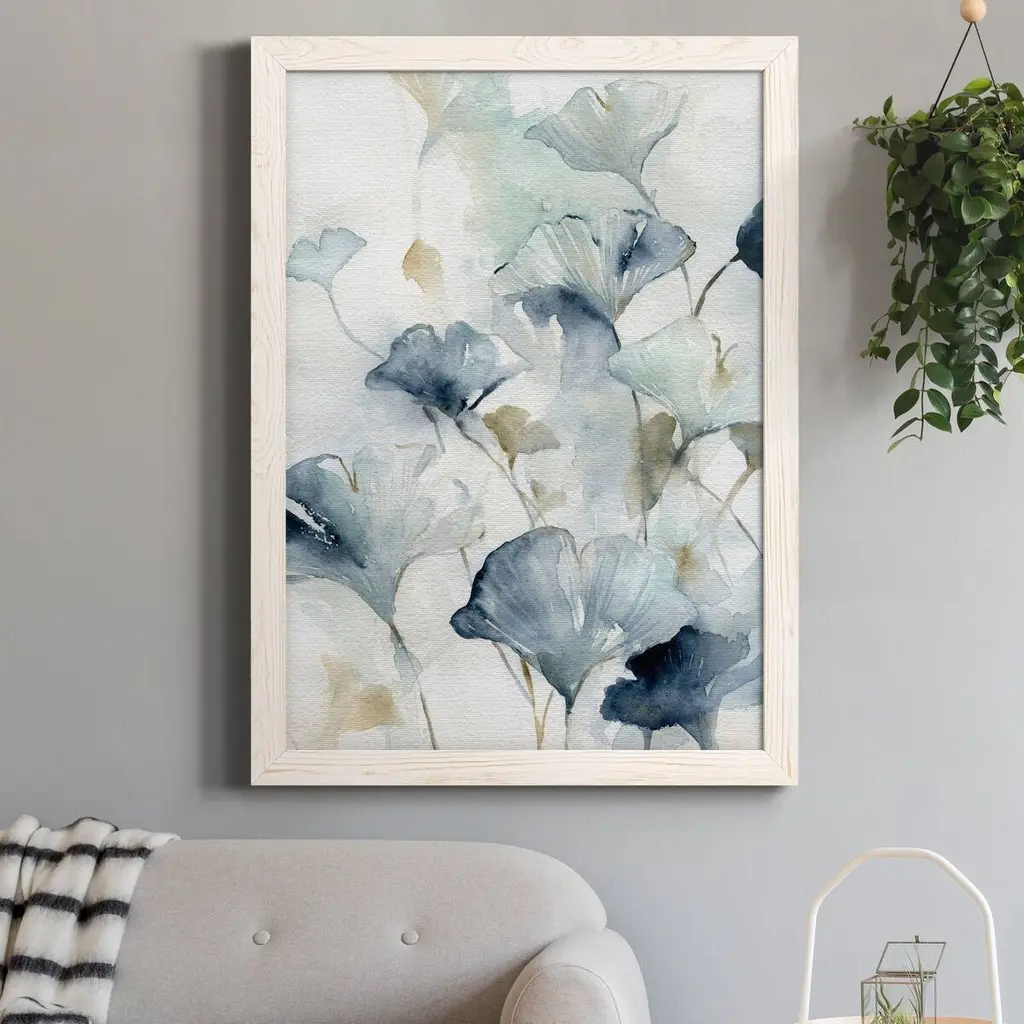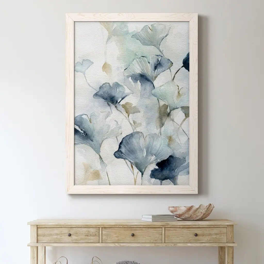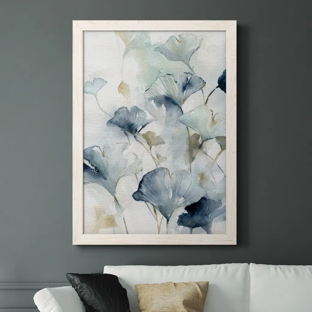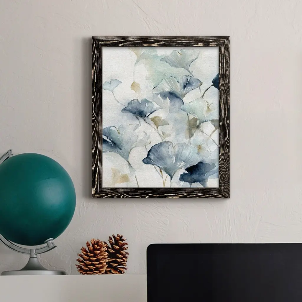 Indigo Ginkgo II-Premium Framed Canvas - Ready to Hang Framed in distressed wood and available in an array of sizes and colors Each piece is joined and assembled by hand and comes ready to hang FRAMED GICLEE CANVAS HAND STRETCHED GALLERY WRAPPED CANVAS READY TO HANG MADE IN THE USA SOLID WOOD FRAME MADE IN USA FADE RESISTANT GICLEE PRINTING on Canvas