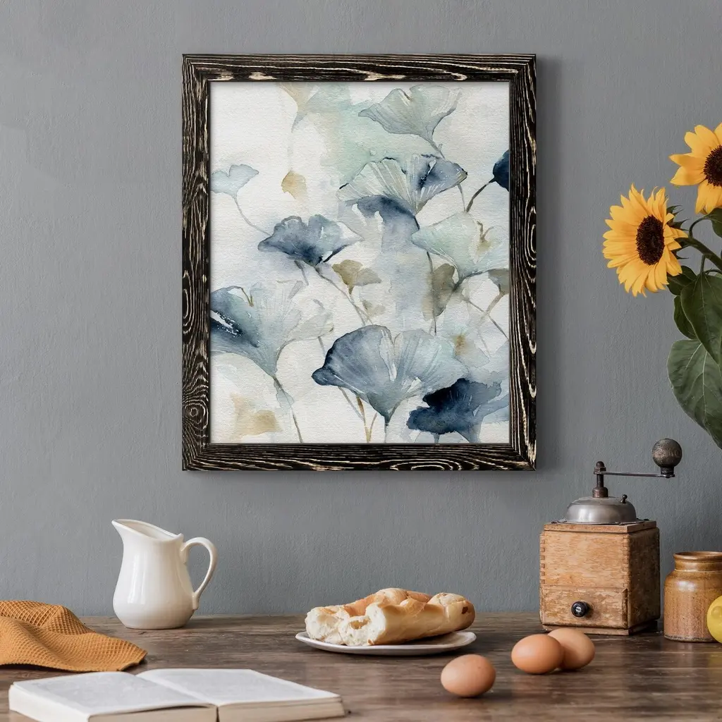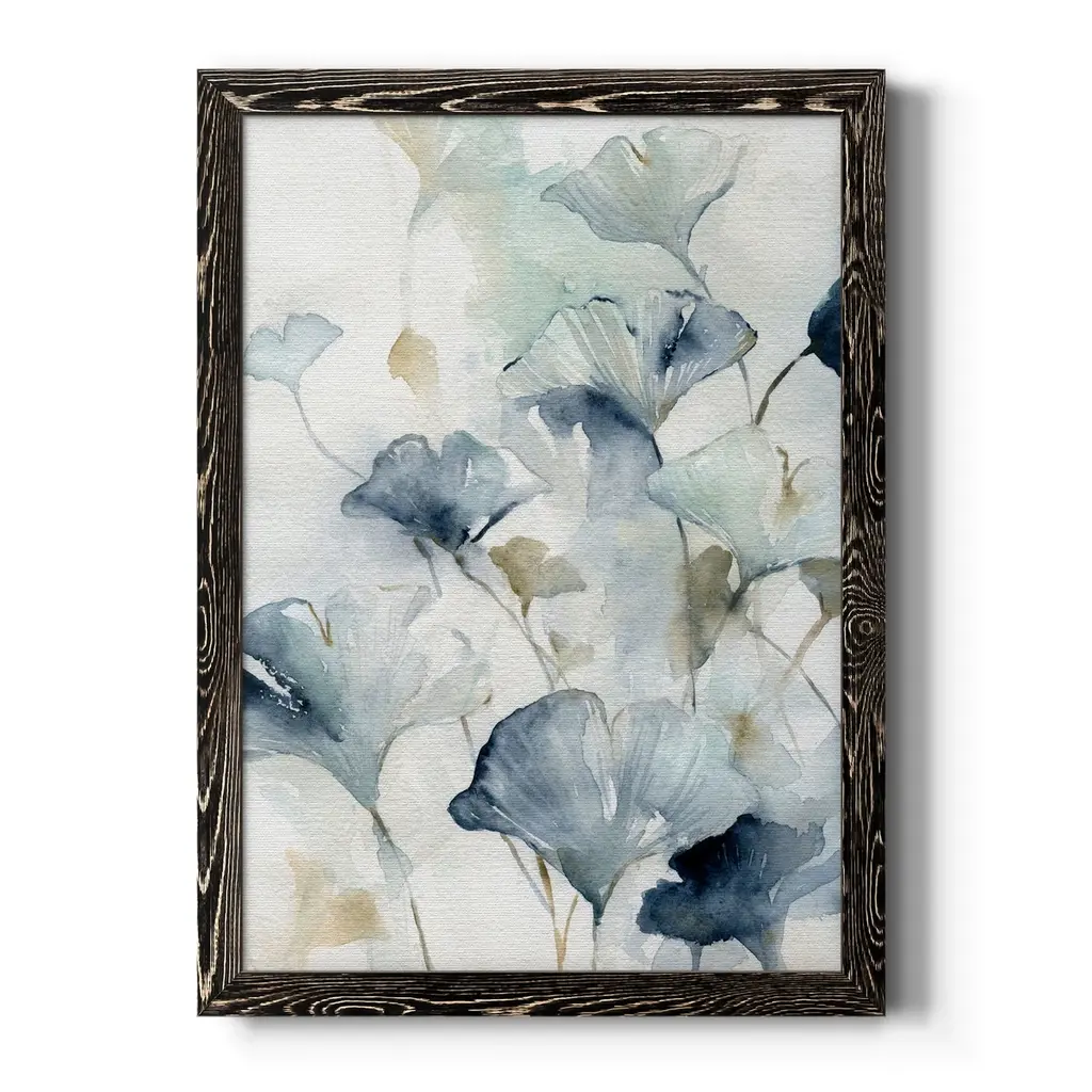 Indigo Ginkgo II-Premium Framed Canvas - Ready to Hang Framed in distressed wood and available in an array of sizes and colors Each piece is joined and assembled by hand and comes ready to hang FRAMED GICLEE CANVAS HAND STRETCHED GALLERY WRAPPED CANVAS READY TO HANG MADE IN THE USA SOLID WOOD FRAME MADE IN USA FADE RESISTANT GICLEE PRINTING on Canvas