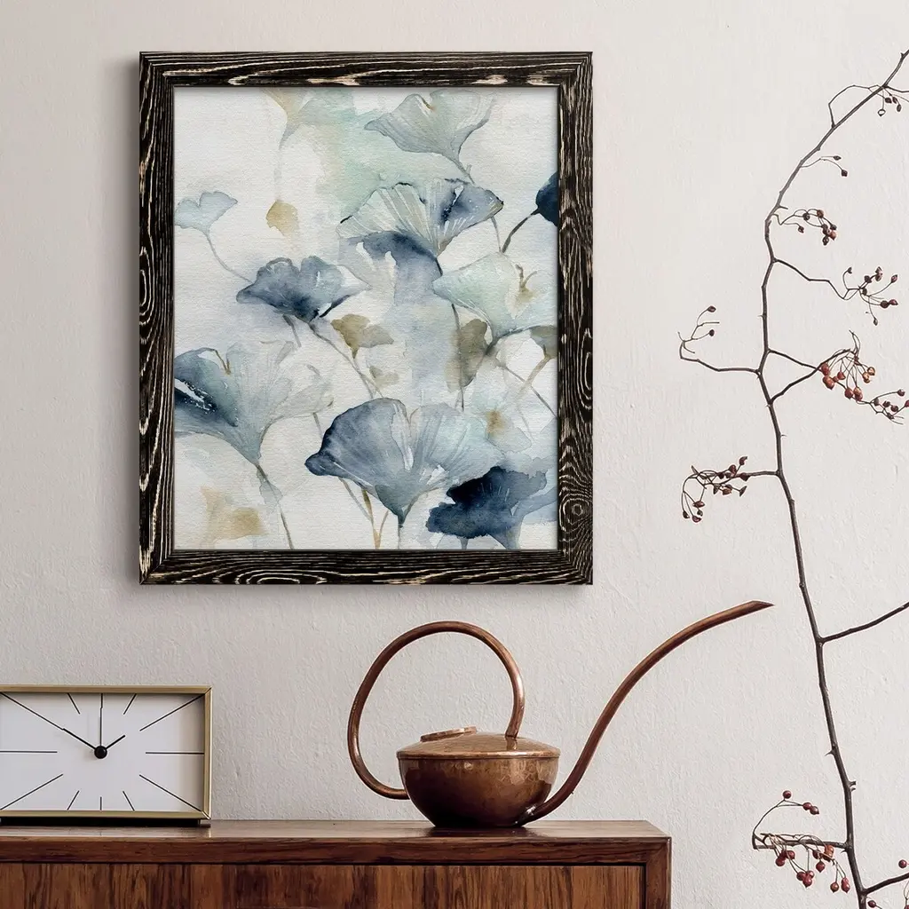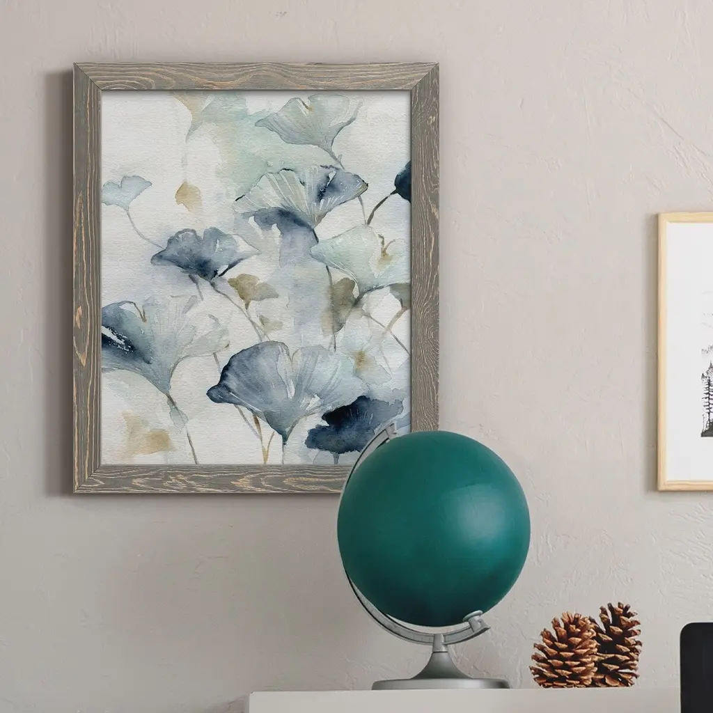 Indigo Ginkgo II-Premium Framed Canvas - Ready to Hang Framed in distressed wood and available in an array of sizes and colors Each piece is joined and assembled by hand and comes ready to hang FRAMED GICLEE CANVAS HAND STRETCHED GALLERY WRAPPED CANVAS READY TO HANG MADE IN THE USA SOLID WOOD FRAME MADE IN USA FADE RESISTANT GICLEE PRINTING on Canvas