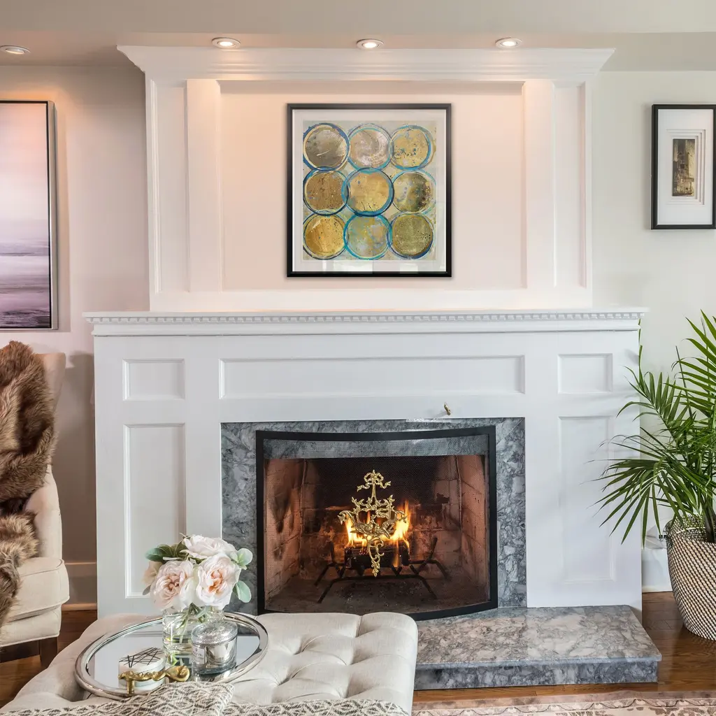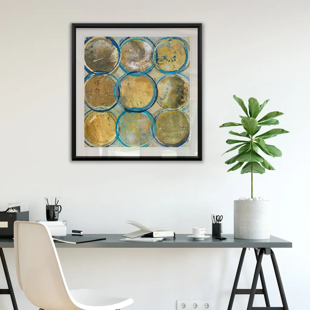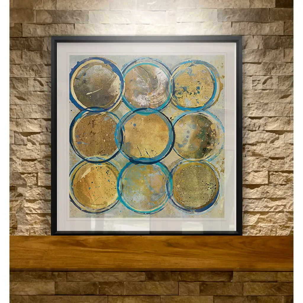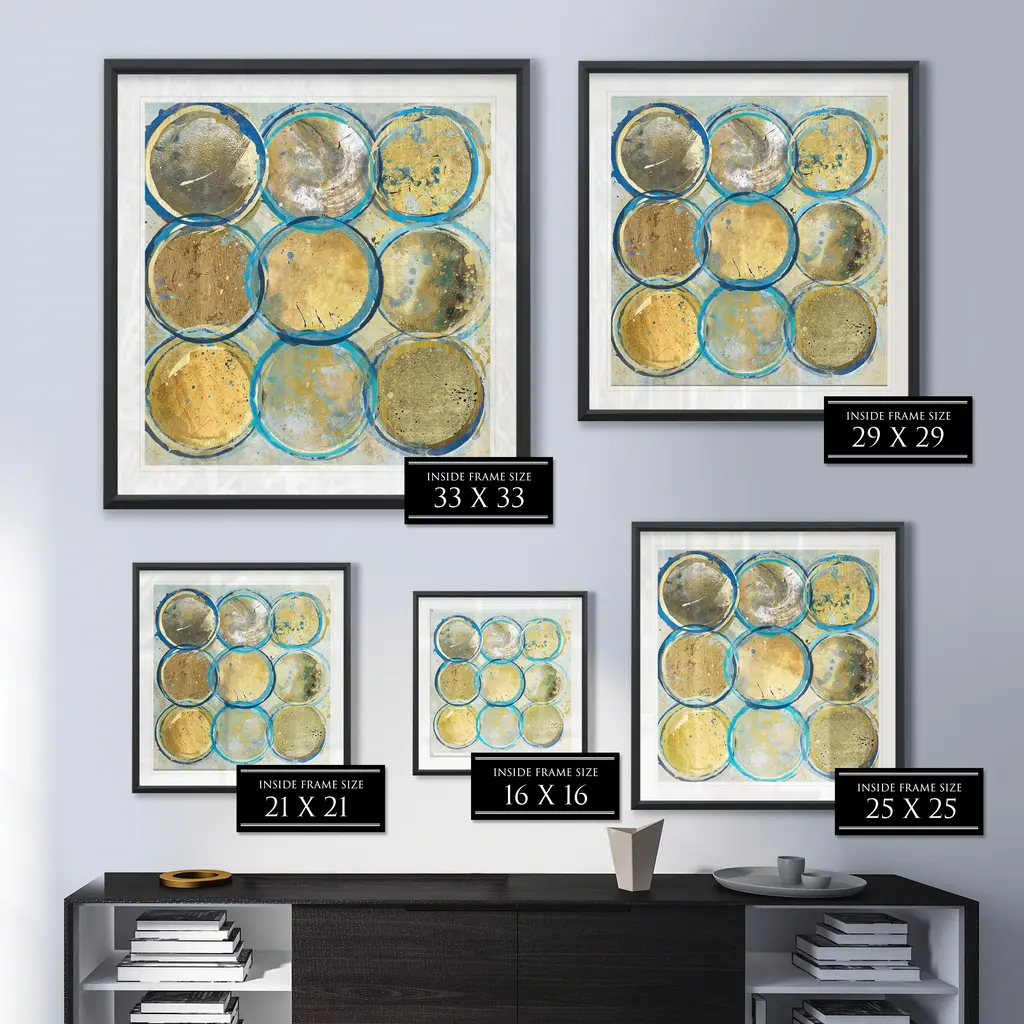 Indigo Gold -Framed Giclee Print A premium framed giclee print Printed using the last archival inks. Each print is carefully printed and framed by hand. Each piece features a 2'' Beveled matt board, acrylic glass and comes ready to hand. 5 SIZES AVILABLE 16''x16''- Overall Size 24''x22''- Overall Size 28''x28''' - Overall Size 32''x32''' - Overall Size 38''x38'' - Overall Size ** Overall size may vary slightly from piece to piece Each piece is made to order. Built to Last Each piece comes ready to hang Archival Ink 2'' Matt Board Assembled by hand in the America