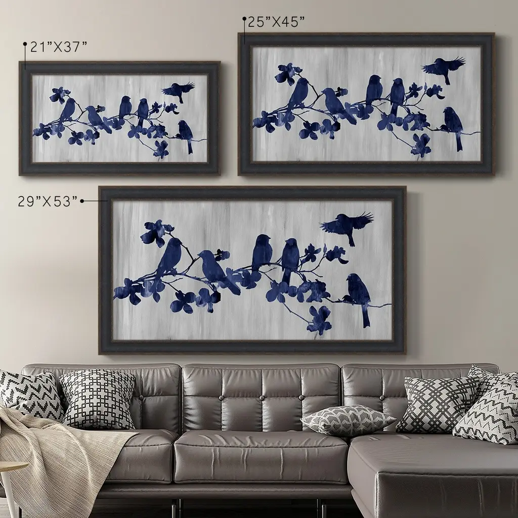 Indigo Hangout Premium Framed Canvas- Ready to Hang A Premium Framed Canvas created to last. Framed in distressed wood and available in an array of sizes and colors Featuring a beveled a solid wood stretcher bar, each piece comes ready to hand 3 SIZES AVAILABLE 21''X37'' - Overall Size 25''X45'' - Overall Size 29''x53'' - Overall Size Each piece is made to order. Each piece comes with hanging hardware. Made in the USA Ready to Hang Giclee Paper Print Acrylic Glass Beveled Matt Board