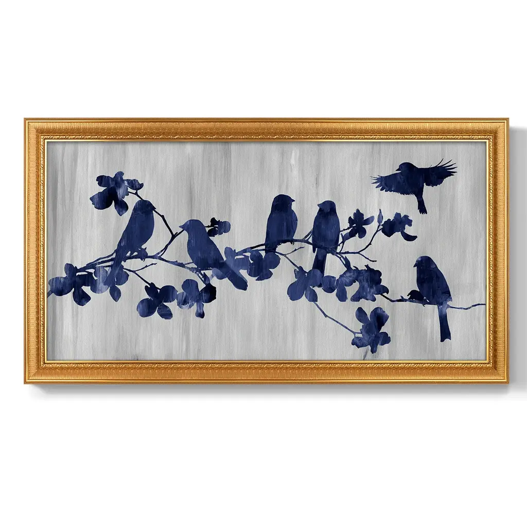 Indigo Hangout Premium Framed Canvas- Ready To Hang - 18x34 - Gold